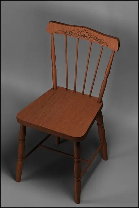 This is a set of three different looking wooden chairs.