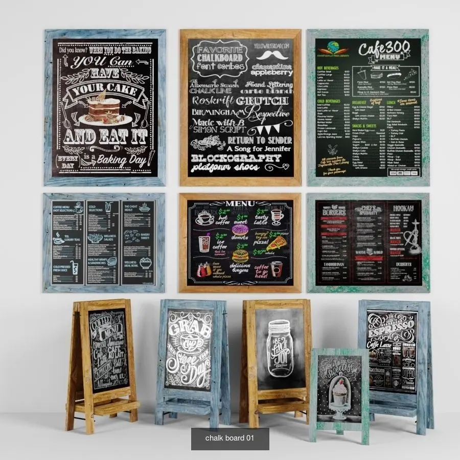 chalkboards collection you can use in your 3D interior scene cafe or restaurant & ... in 3ds max.