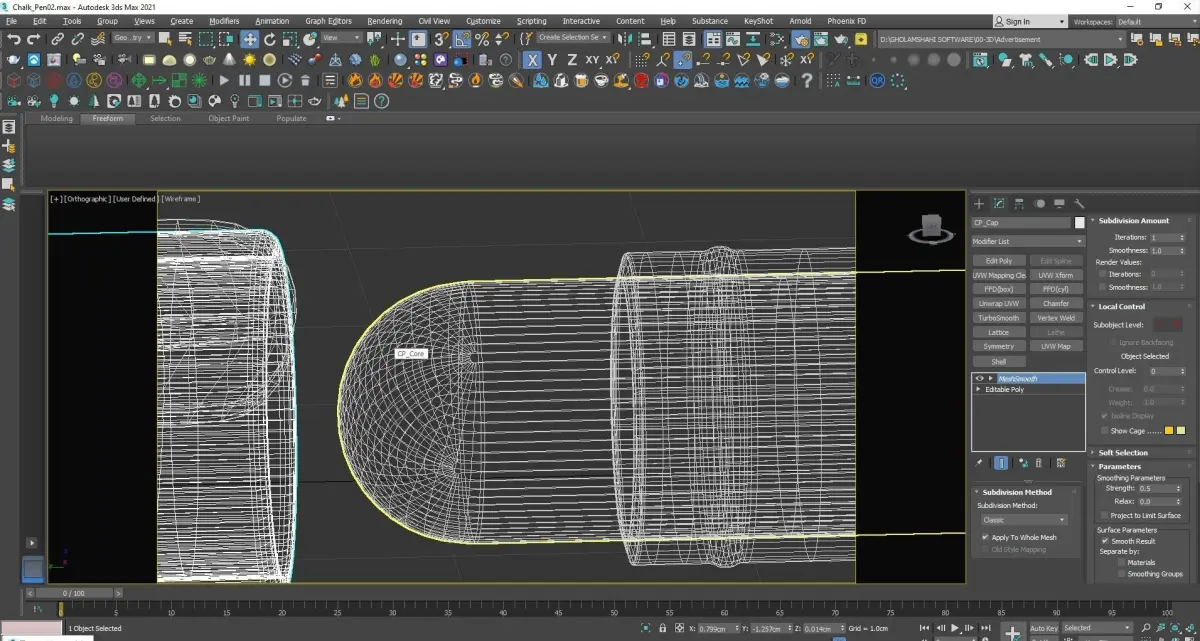Name: Chalk penType: ModelFormat: 3Ds Max 2018Export: FBX, OBJ, MATRender: VRay (5.x), Corona (8)Polys: 23252Verts: 23246Units: MillimetersDimension: 19.41 x 161.54 x 18.94Preset: New preset 2022.11.1 13:4:18Date: 2022.11.2Preview: YesTags: Pack info: Packed with Model Packer by https://3dground.net/Pack: 1.8.0Description: