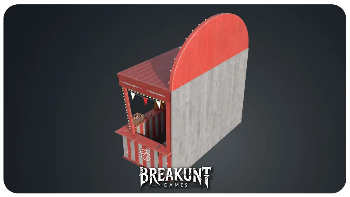 Step right up to the realistic vintage carnival game with this detailed Chamboule Tout CircusStand. Perfect for circus, carnival, or festival environments, this 3D model includesa full wooden booth, painted in red and white stripes, decorated with banners andlights. The stand comes complete with stacked tin cans, colorful balls, and a fullyimmersive design. Optimized for video games, this asset brings the authentic feel of a classicmidway fairground attraction. Great for horror circus, festival games, or vintage carnivalscenes.
