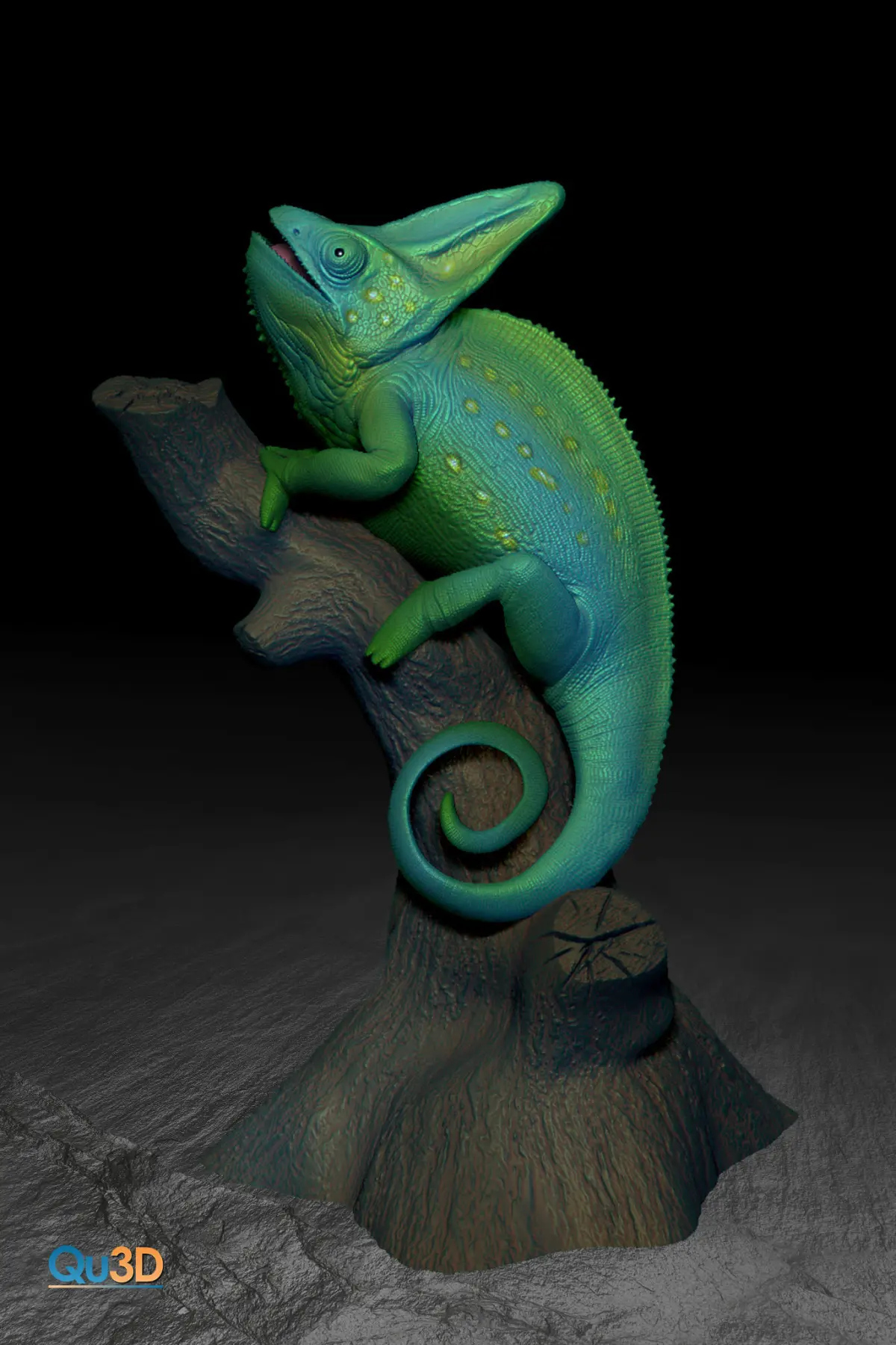 Yemen chameleon on AST - high-end 3D print model. Arbitrarily scalable!