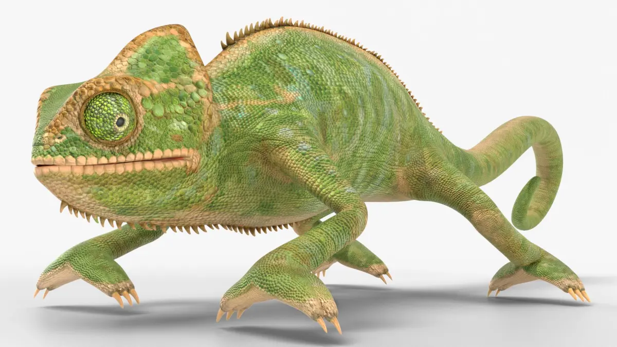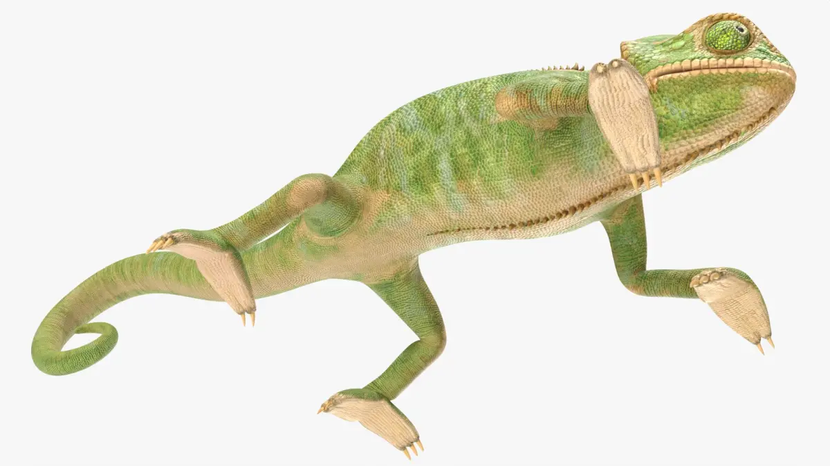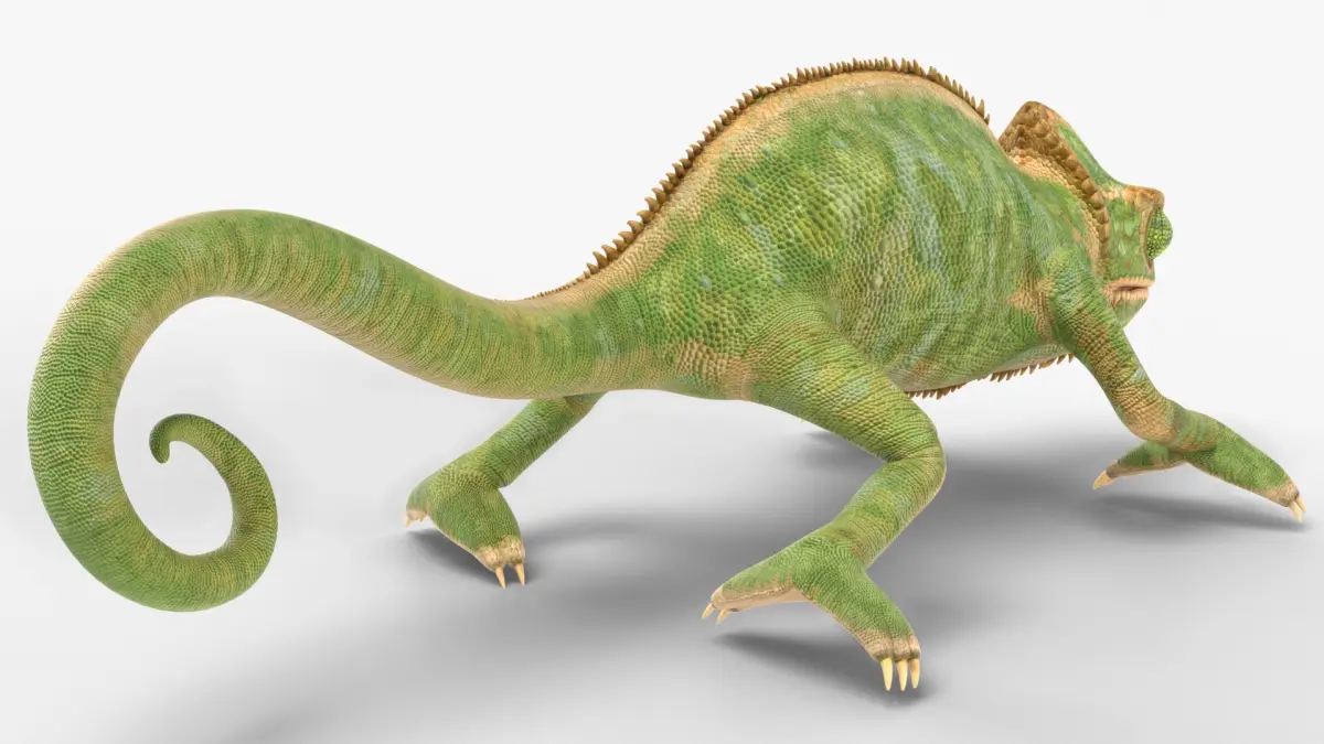 This model represents a detailed depiction of a chameleon with textured scales, slender limbs, and a coiled tail. It captures the reptile’s characteristic head crest, gripping toes, and alert posture, emphasizing its adaptability and unique biological features. The model reflects the natural anatomy and lifelike appearance of this remarkable arboreal animal.