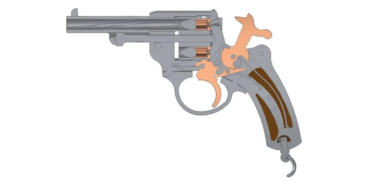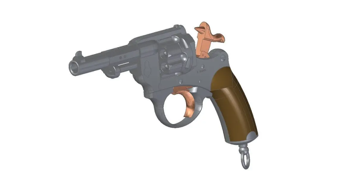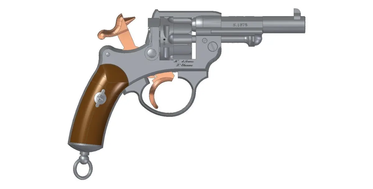 Full assembled model of French revolver MAS-1874 and 11mm bullet.