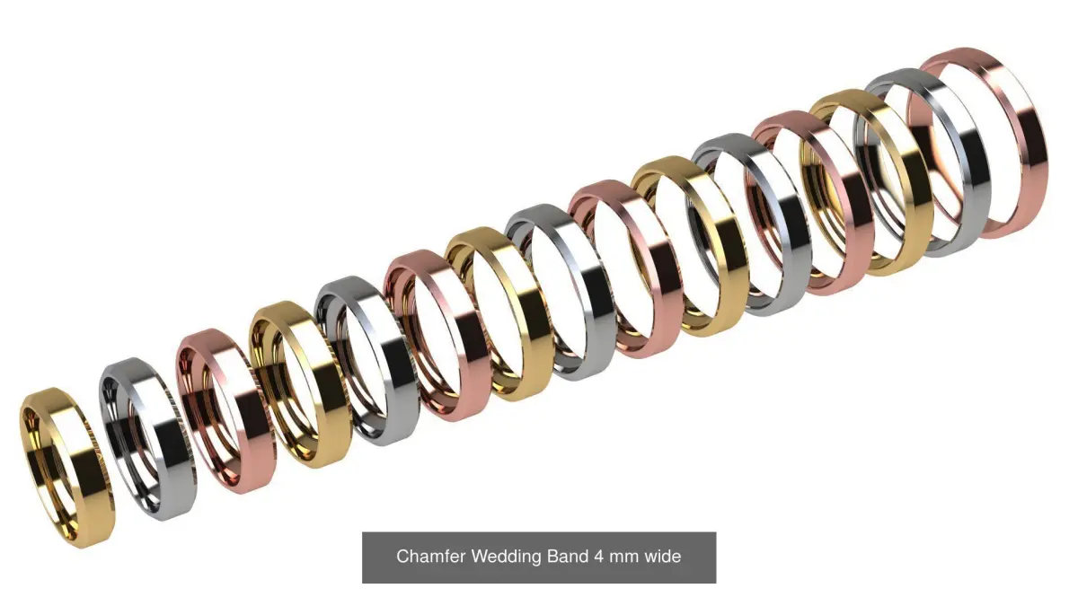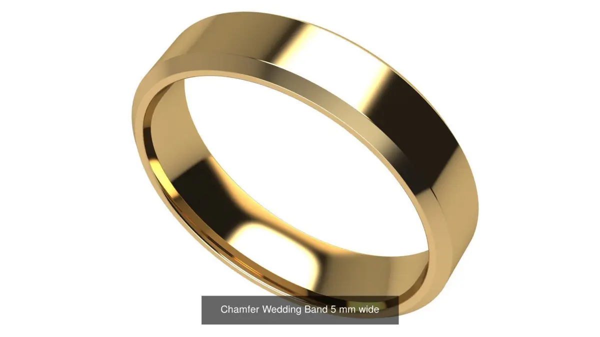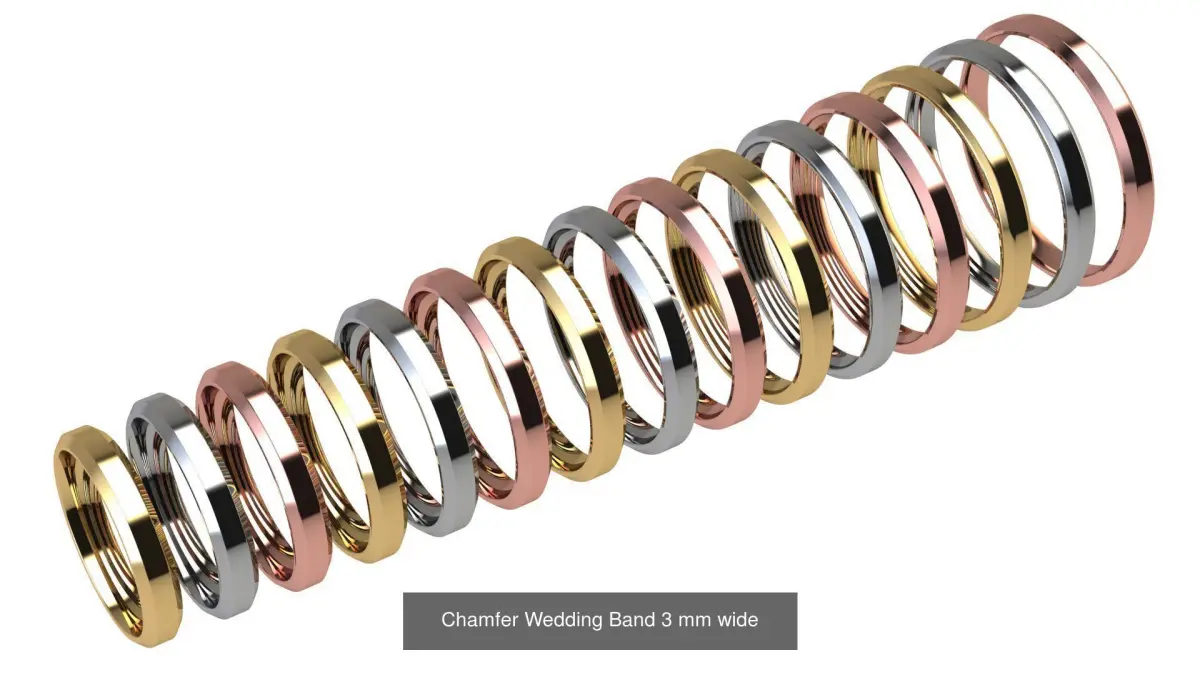 This collection includes the Chamfer Wedding Band 3 mm, 4 mm, 5 mm wide, 3d printable models.