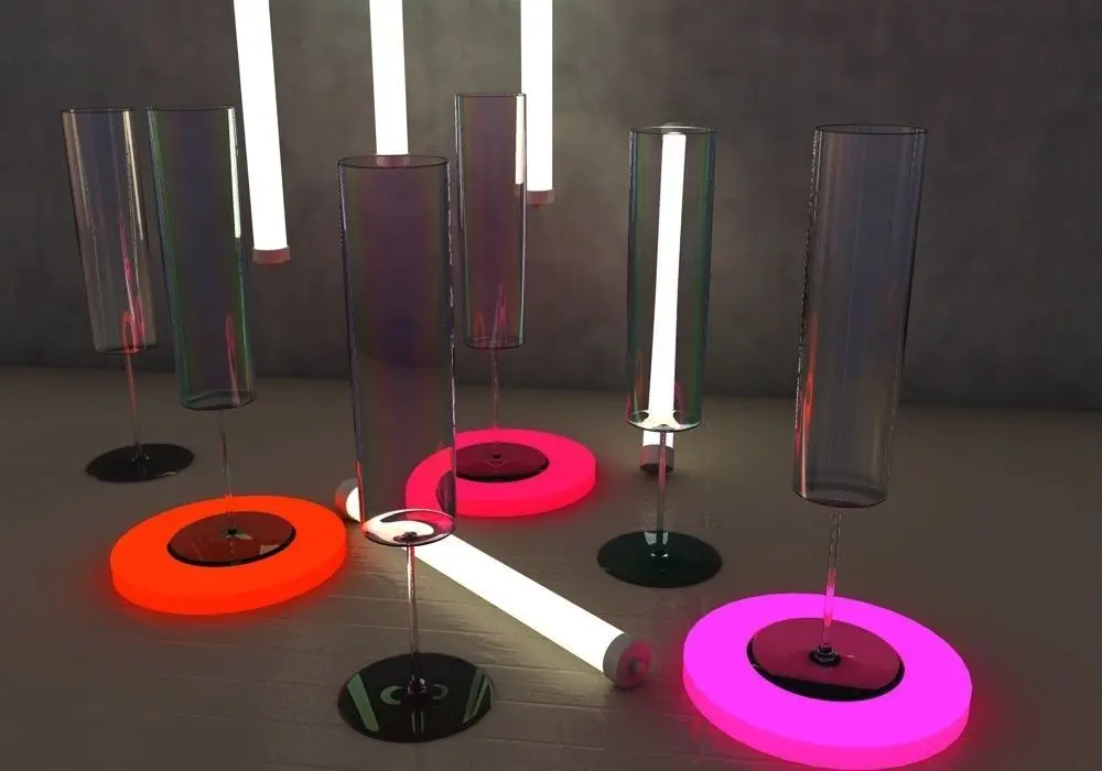 Drink Glass of Champagne barware is created in Cinema4D: photorealistic 3d glassware model, Stylish and elegant, royal modern Champagne Wine glass. Colourful Transparent glasses set of Champagne flute Glass 3D model drink.