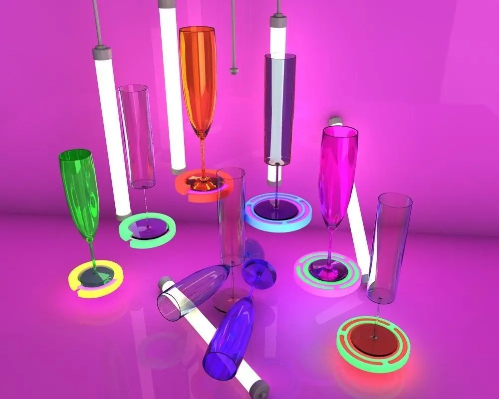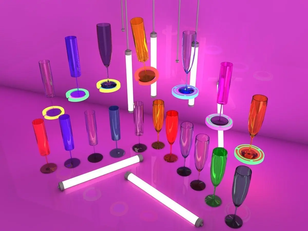 photorealistic 3d barware cocktail colourful models, Stylish and elegant, royal modern glass set of Champagne. Also cool glass holders are included with this set!
