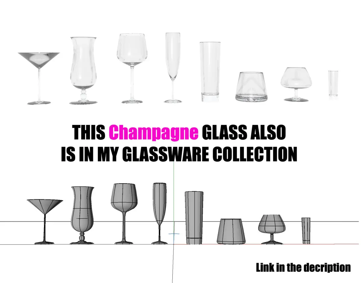 THIS 3D Champagne classic Glass IS ALSO IN MY GLASSWARE COLLECTION:PLS check Preview Renders Images and link :