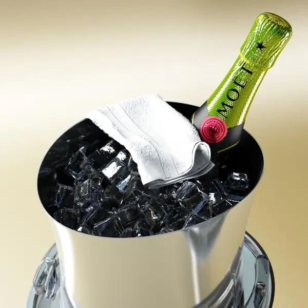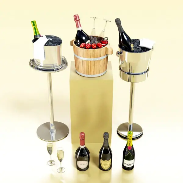 Photorealistic and High Detailed Champagne Ice Bucket Set - 3 Bottles, 3 Ice Buckets, Flute, Towel, Strawberries and more.