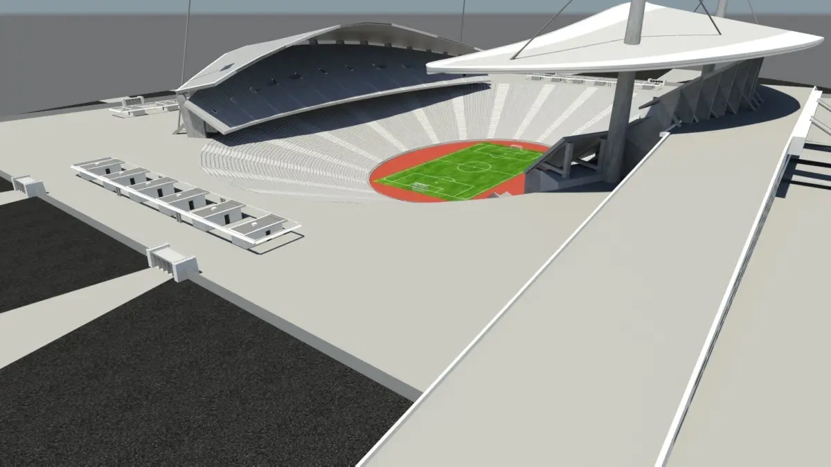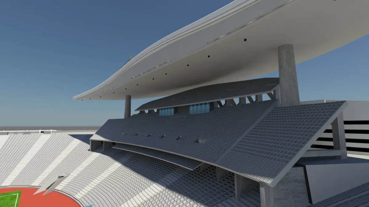 It was inspired by the Olympic Stadium in Istanbul. It consists of tribune, stairs, lounges, toilets, ticket offices and large LED screen parts. Boxes, ticket offices and toilets are not allowed. There is also a parking area outside. Stadium seats are made with texture.
