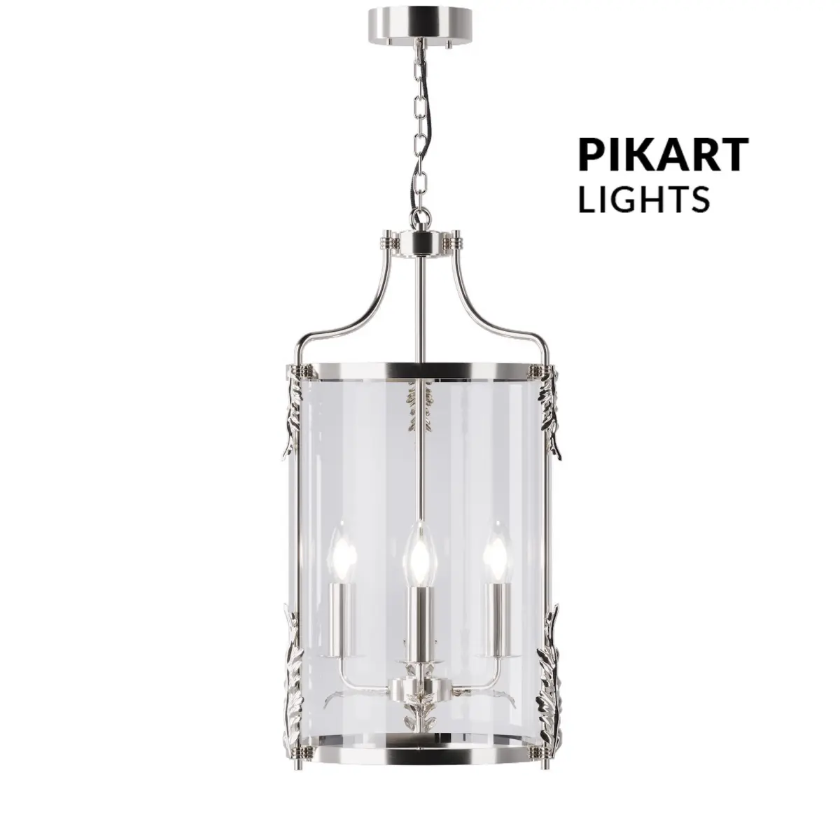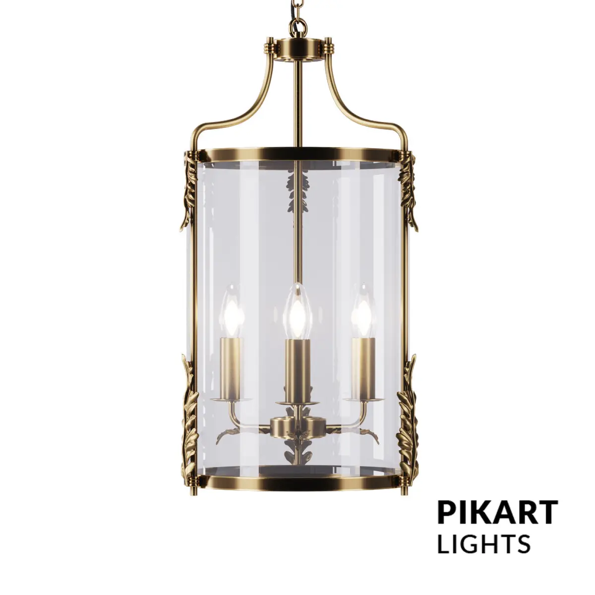 Chandelier ''AM lamp'' SKU.5223 by PikartlightsThe classic lamp in the American style AM lamp attracts attention with its elegant shape and grace. Thin smooth lines emphasize the cast details. Stylized for candles, elongated plinths in a glass ceiling are reminiscent of the chandeliers of luxurious villas of past centuries.We offer AM lamps in golden and silver colors. A chandelier with a nickel (silver) coating, which protects the material from natural aging, will successfully complement interiors of neutral and cold tones. The golden color will add a touch of warmth, and create the atmosphere of a social party or a formal reception. The chandelier will decorate interiors of classic and ethnic styles.Made of brass and glass. For more information please check the product page: