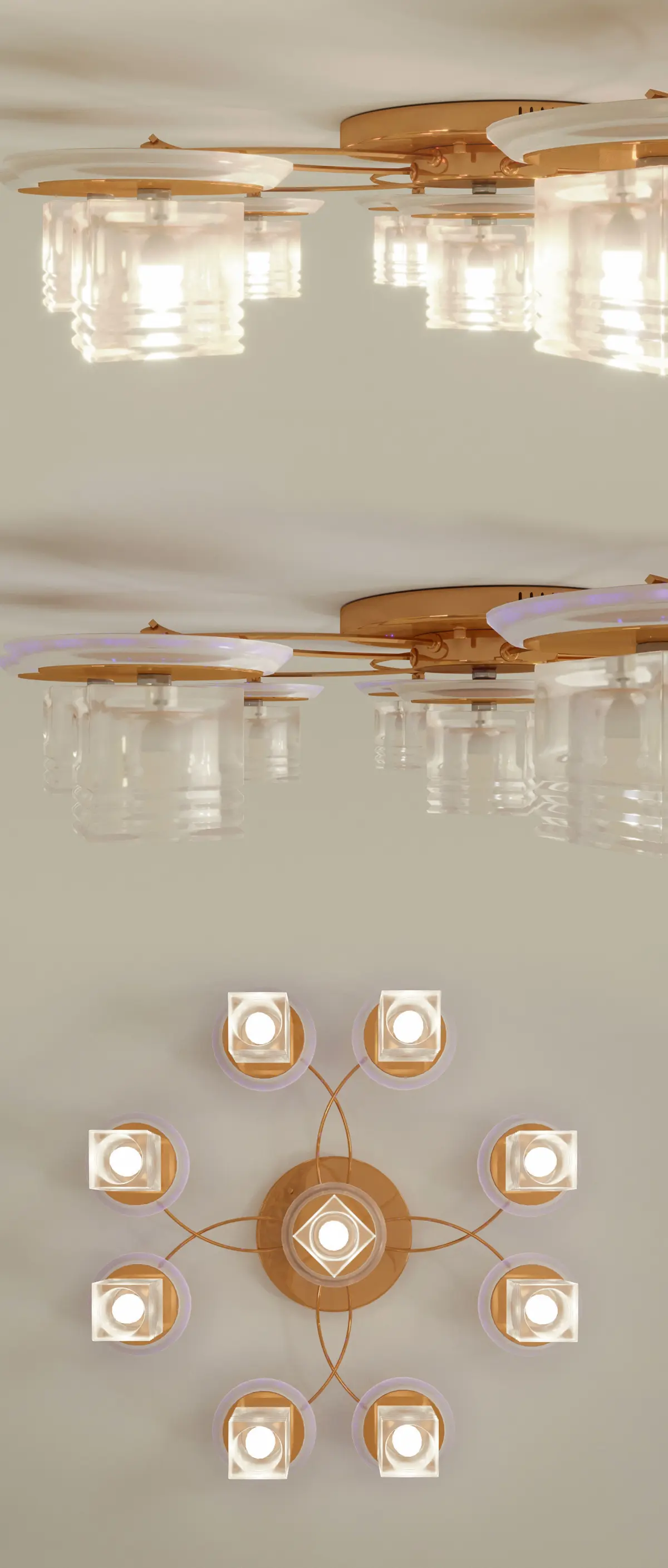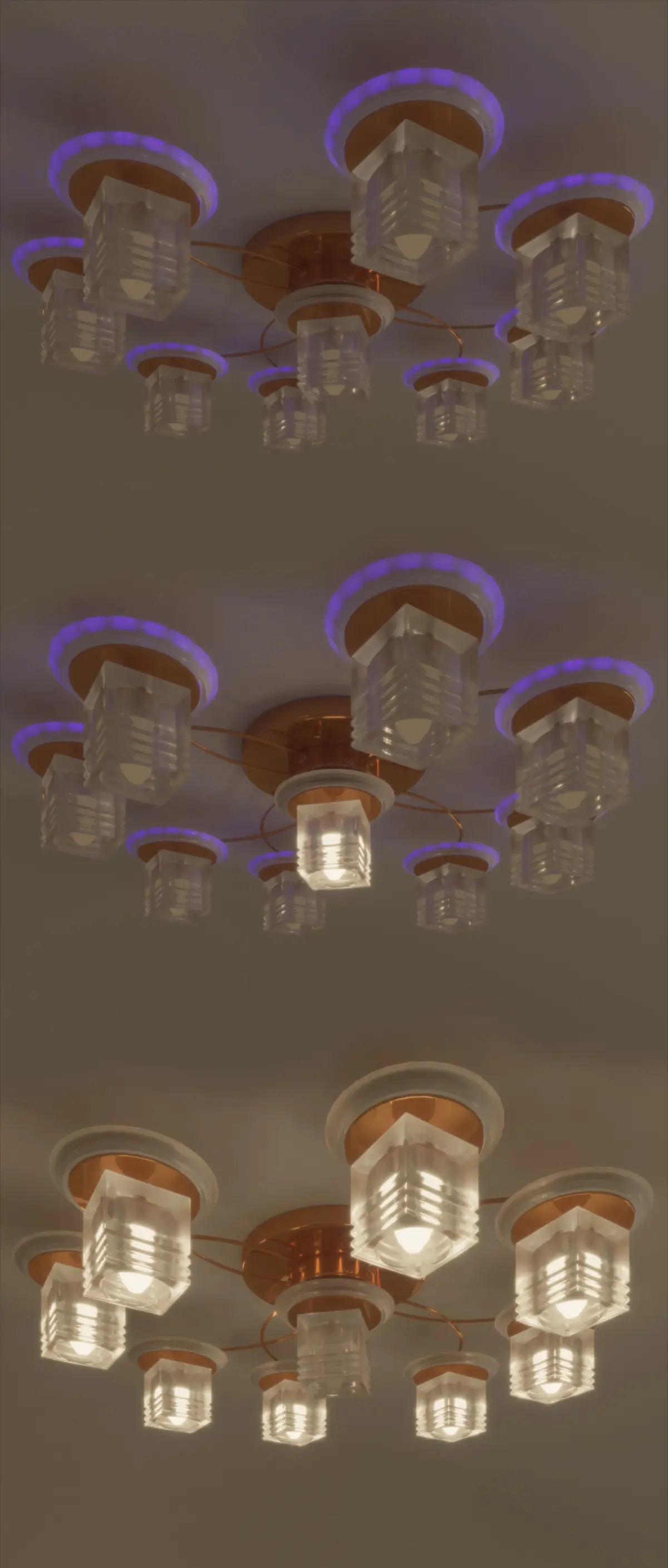 Low-poly chandelier, chandelier with blue lighting.