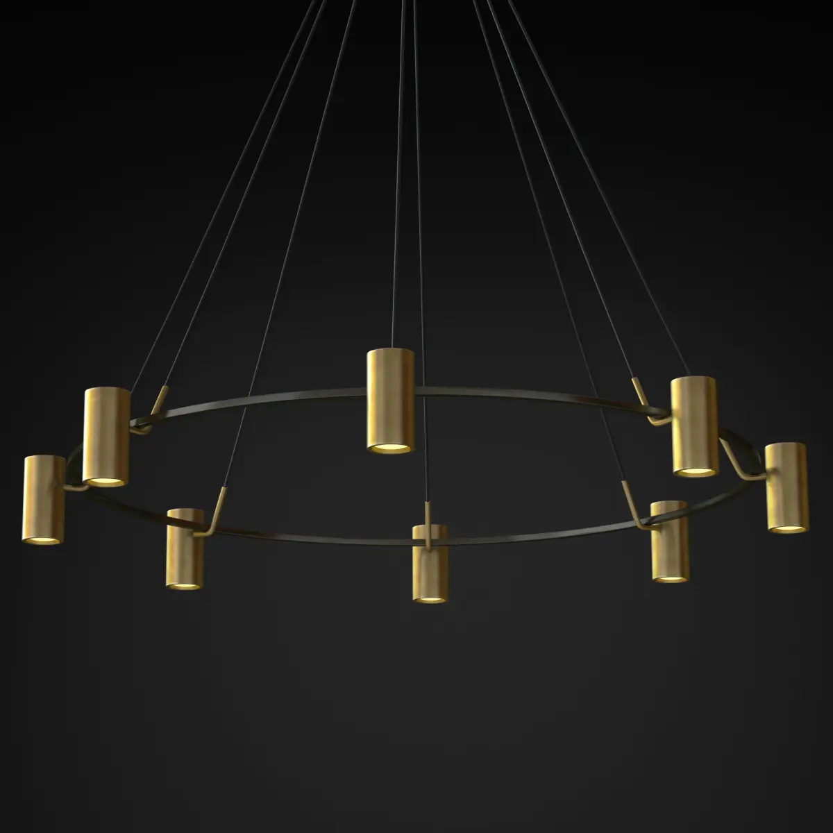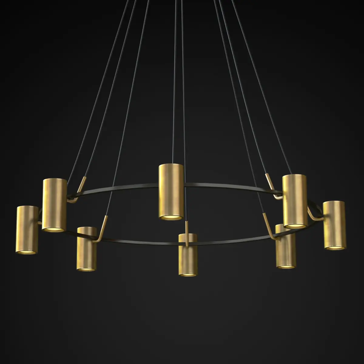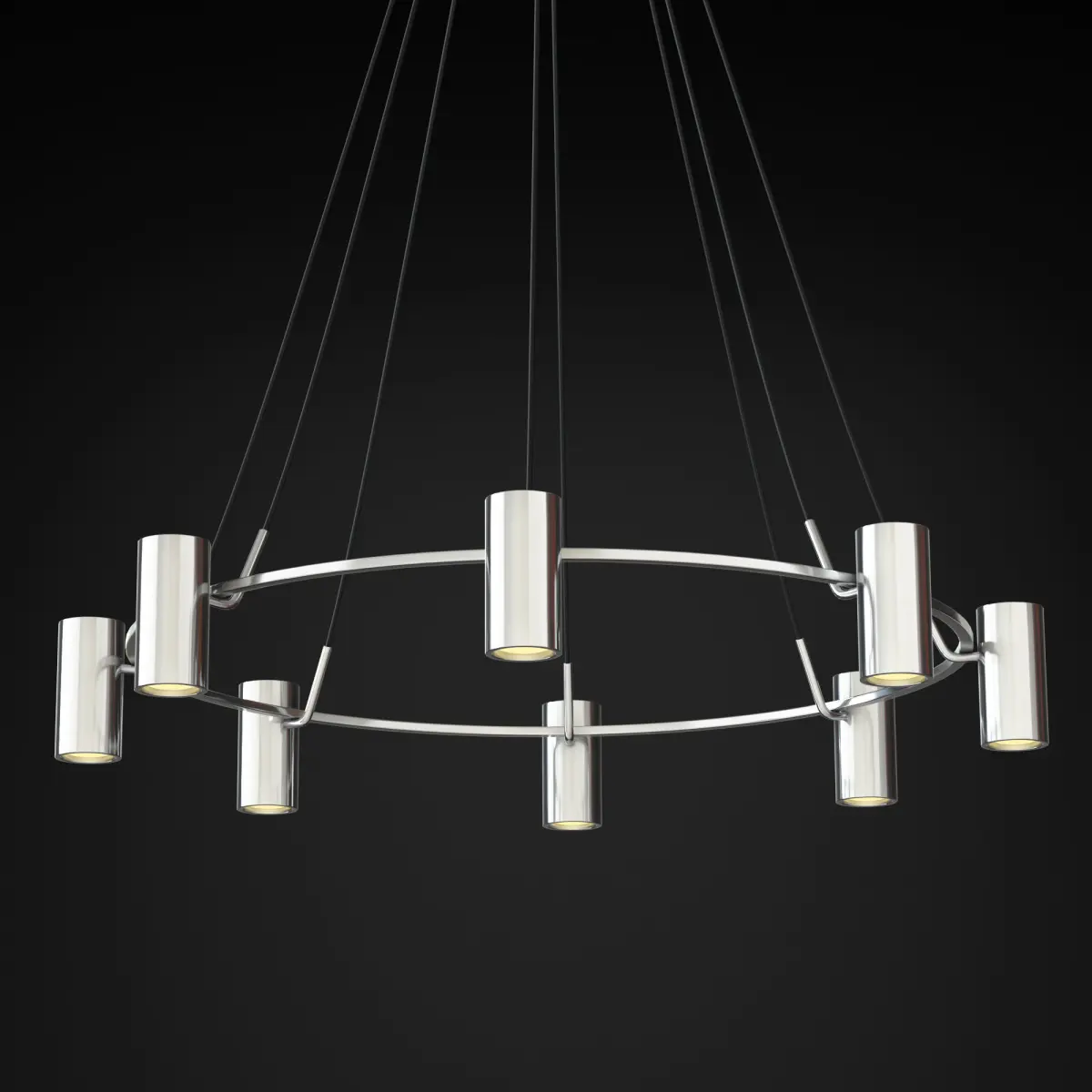 In the scene of a two-color chandelier (Polished Nicke, Lacquered Burnished Brass / Bronze) Polished Nickel chandelier