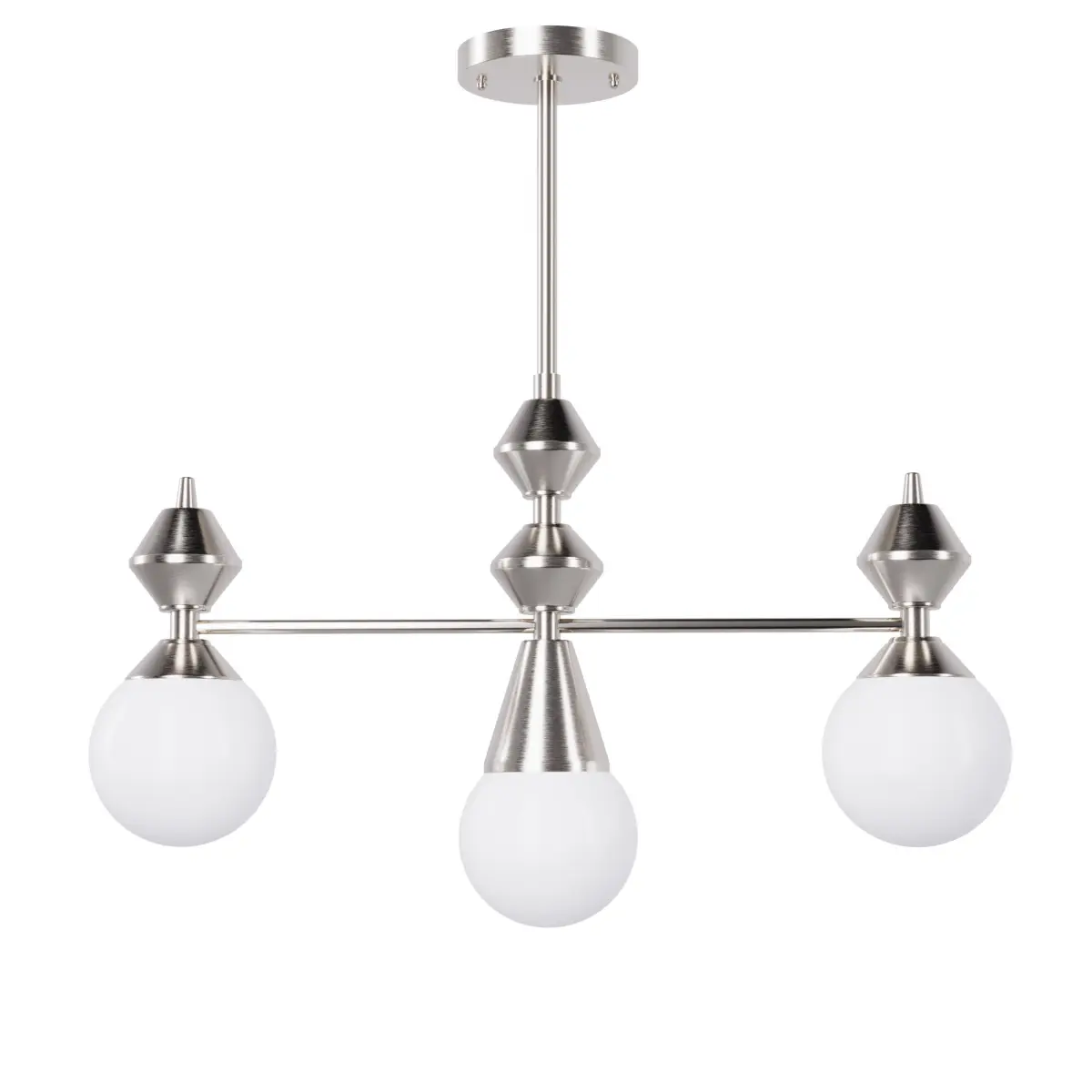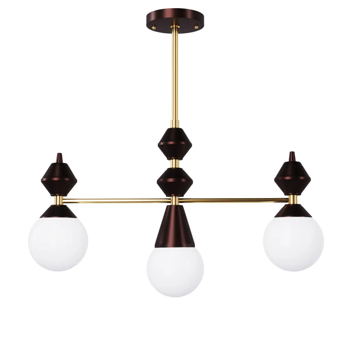 Chandelier ''Dome V3'' SKU.5255 by Pikartlights The compact chandelier is inspired by the architecture of an ancient Christian temple. It consists of three symbolic domes and shades made of frosted white glass, which pleasantly diffuses warm light. The lamp is designed for a small bedroom, kitchen, or bathroom, but it will also be perfectly placed above the dining table in a spacious living room of Classic or Eclectic style, creating an atmosphere of family coziness and comfort. All parts are made of durable painted steel and brass. Made of brass, glass, and steel. For more information please check the product page: