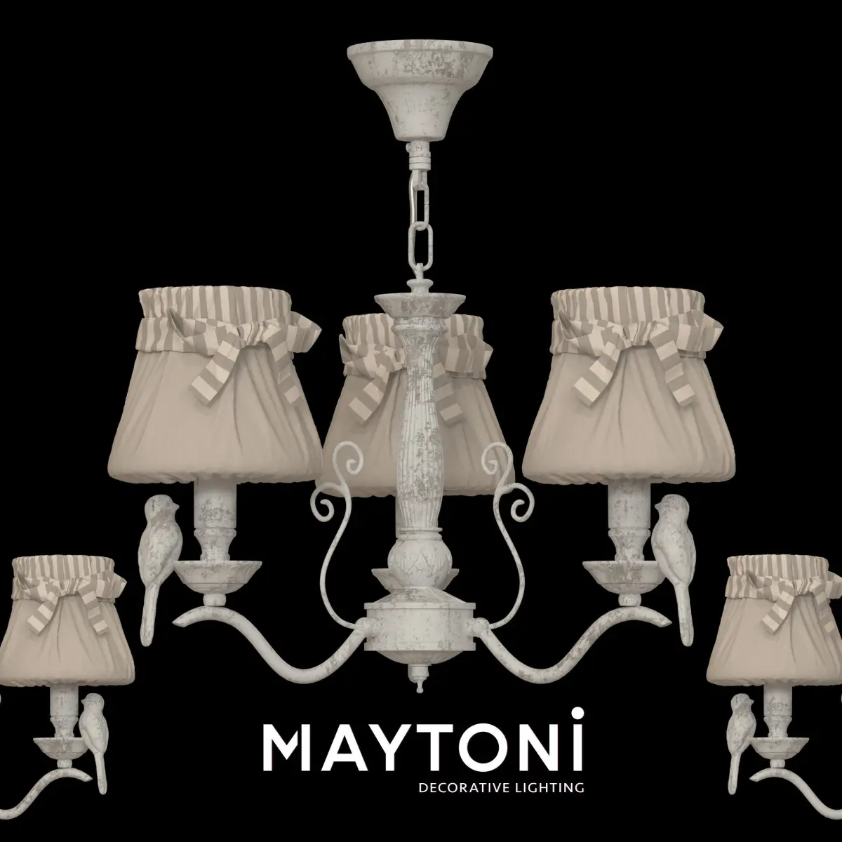 Metal frame. Decorative elements in the form of polyresin birds. Lampshade of linen on an elastic band (removable).Weißer Metallrahmen. Kleine Vögel als Zierelemente. Abnehmbarer Lampenschirm aus Leinen.Series: BirdCollection: ElegantStyle: Maytoni ClassicType of lamp: ChandelierColour: White AntiqueTop diameter, mm: 100Bottom diameter, mm: 150Height, mm: 130Material of shade: LinenColour: LinenFrame material: MetalHeight , mm: 370Height with suspension mount, mm: 870Diameter, mm: 550Number of bulbs: 3Cap: E14Power: 40W