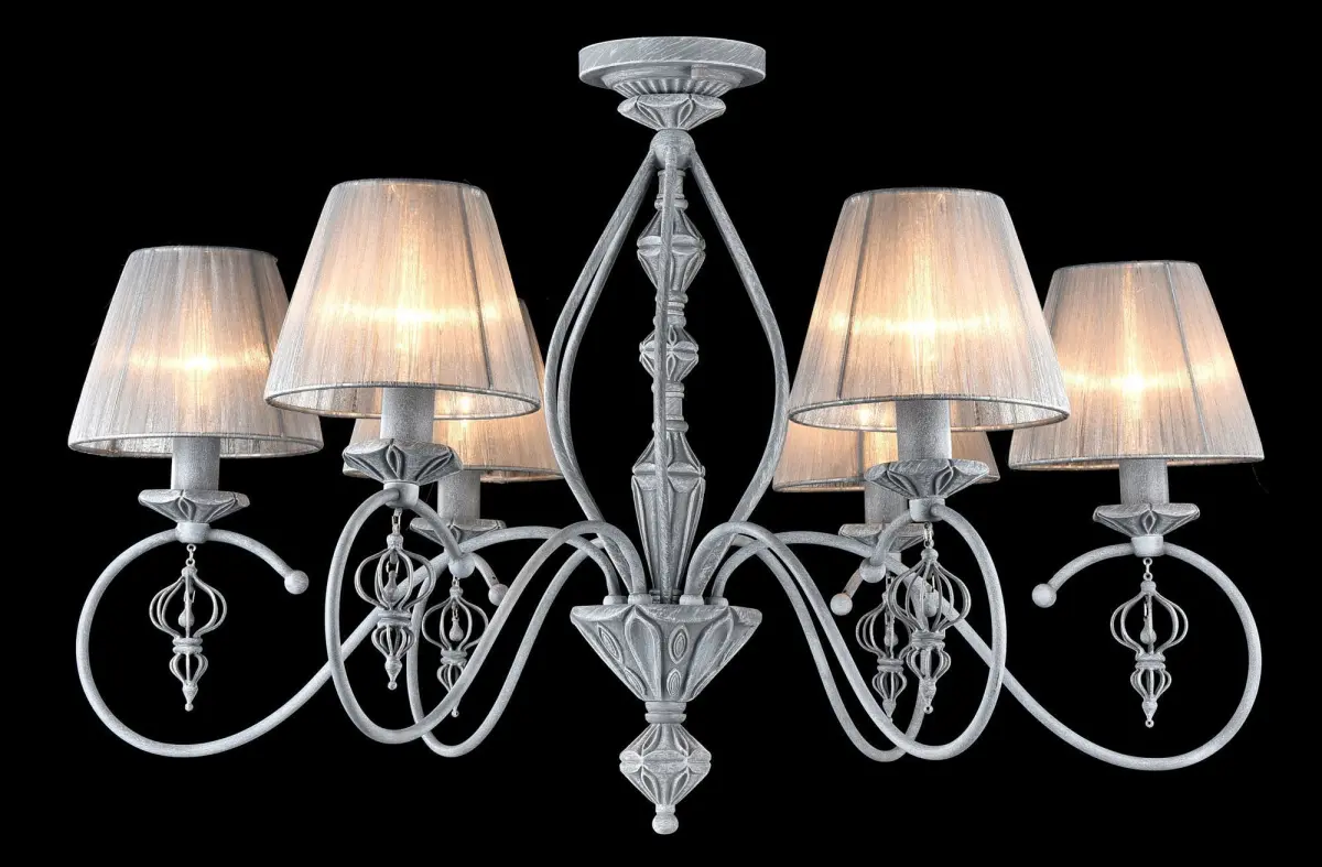 Height, mm: 130Material of shade: OrganzaColour: GreyFrame material: MetalHeight , mm: 530Height with suspension mount, mm: 1030Diameter, mm: 740Number of bulbs: 6Cap: E14Power: 40W
