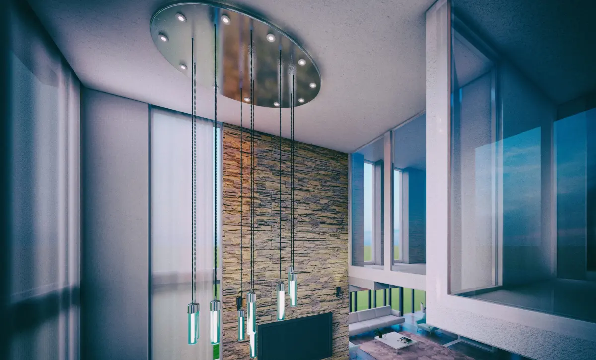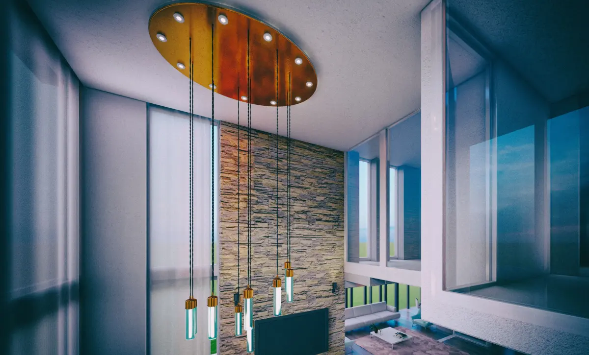 It is a pendant lighting / chandelier for double height spaces such as loft houses, mezzanines, atriums commonly. Design has contemporary style vertical edison bulbs in order to reference narrow double height spaces. Eliptical part o the model has spot lights in order to increase the effect of lighting and chandeliers splendid view. Model has also STL format for direct 3D Printing,