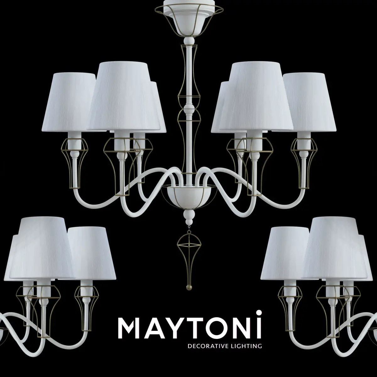 Chandelier Frame ARM709-PL-06-W Maytoni ClassicMetal frame. Decorative framing of gold wire. PVC lampshade covered with white cloth (nylon).Geschwungener Metallrahmen mit dekorativer Golddraht-Umrahmung. PVC-Lampenschirm mit weißem Stoffbezug aus Nylon. Series: FrameCollection: ElegantStyle: Maytoni ClassicType of lamp: ChandelierHeight, mm: 620Height with suspension mount, mm: 1546Diameter, mm: 660Number of bulbs: 6Cap: E14Power: 40WFrame material: Metal Colour: WhiteMaterial of shade: Nylon on PVC