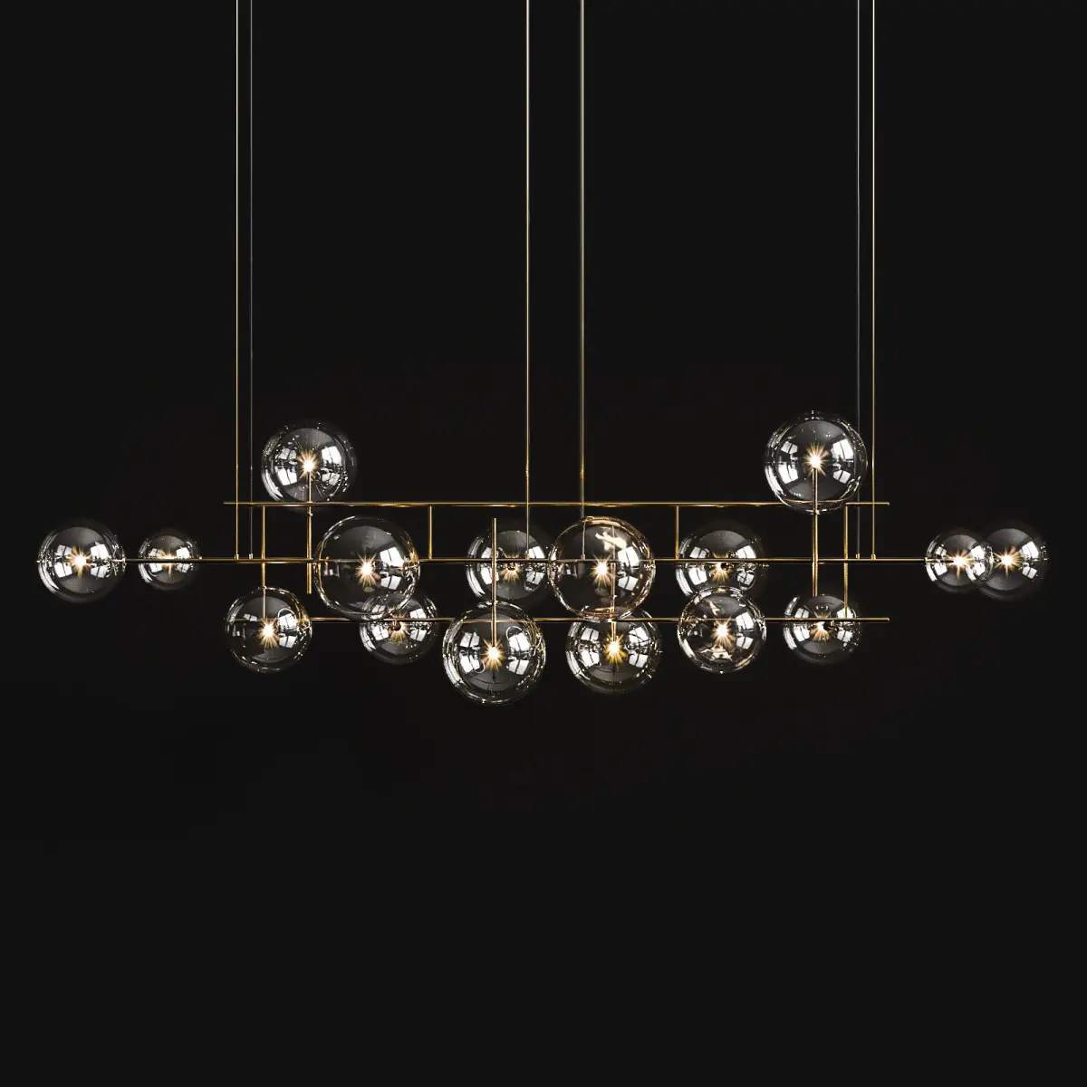 Chandelier Bolle horizontal is suitable for the living room and dining room and bedroom. It can also be used in the kitchen and in the lobby, or in public areas. (bar, cafe, restaurant, club) For interiors in a modern style, a loft, and for interiors with a modern classic style