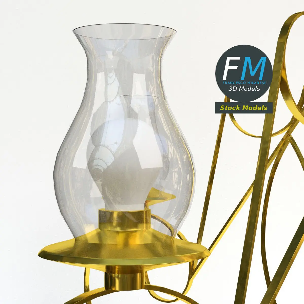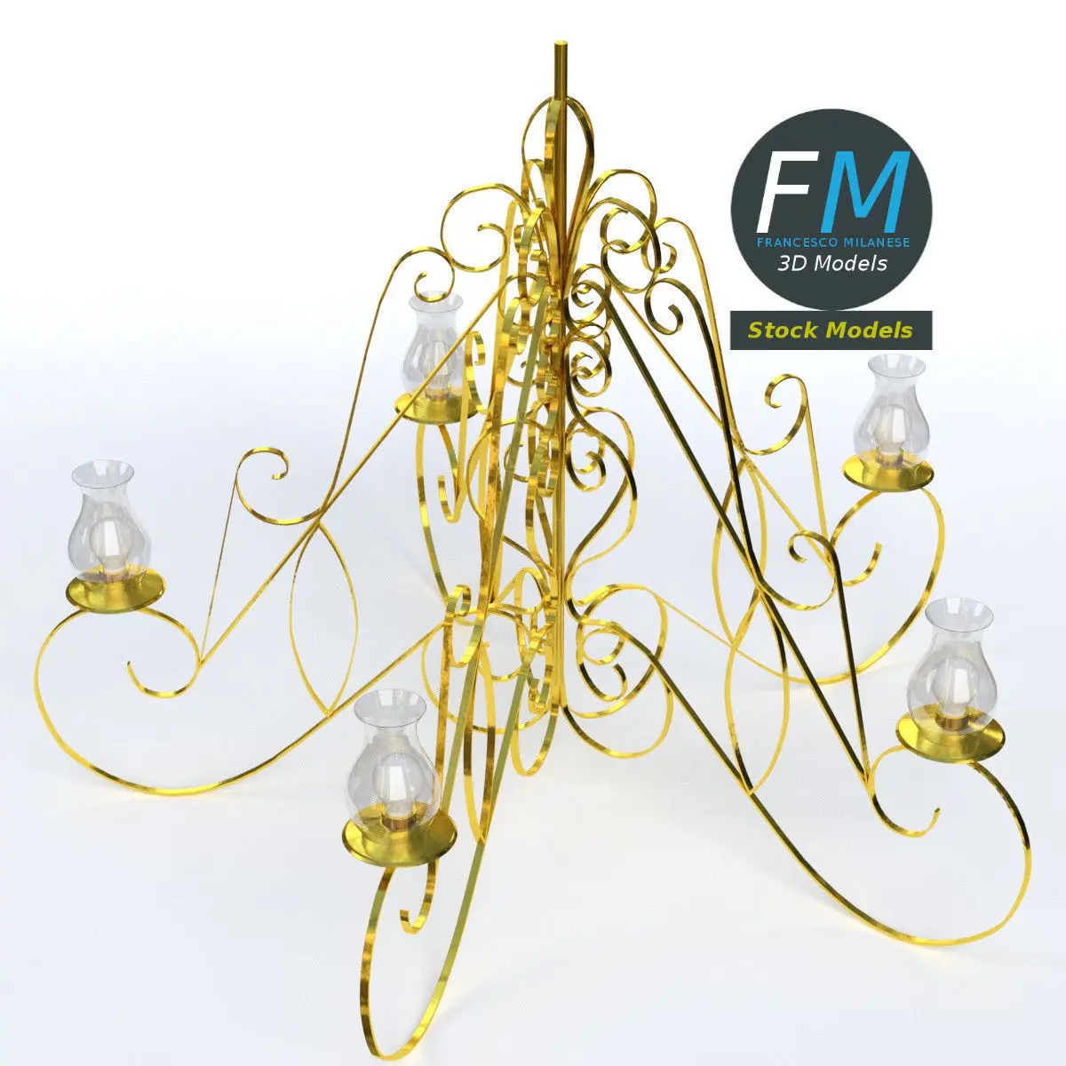 Chandelier 3D Model. 3 individual objects (frame, glasses, bulbs; so, you can easily assing an emitting material to the bulbs), each one with its own non overlapping UV Layout map, Material and PBR Textures set. Production-ready 3D Model, with PBR materials, textures, non overlapping UV Layout map provided in the package.