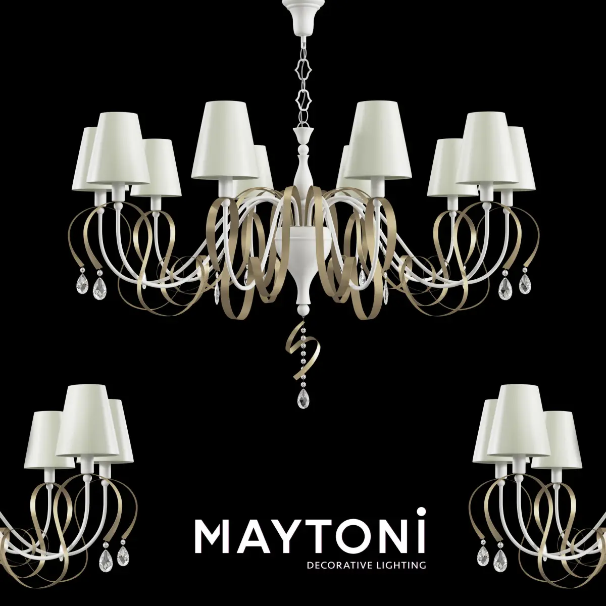 Chandelier Intreccio ARM010-10-W Maytoni ClassicMetal frame. Decorative elements in the form of ribbons. Pendants made of painted crystal. Metallrahmen erhältlich in Weiß und Schwarz. Schleifen als Dekorelemente. Bemalte Kristallbehänge.Series: IntreccioCollection: ElegantStyle: Maytoni ClassicType of lamp: ChandelierHeight, mm: 700Height with suspension mount, mm: 1100Diameter, mm: 1120Number of bulbs: 10Cap: E14Power: 40WFrame material: Metal Colour: WhiteMaterial of shade: Cotton on PVC
