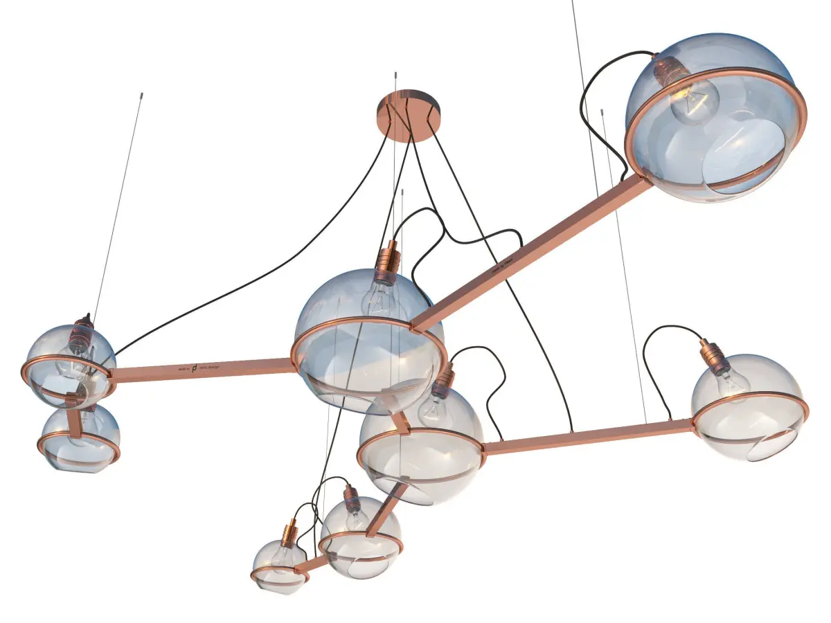 Chandelier Lepus (Constellation of the Rabbit) SKU.20919 by Pikartlights.The Spacelights series is a constellation for everyone. A HOROSCOPE IN METAL AND GLASS that illuminates any interior. Metal: brass, copper, chrome, painted metal. The Spacelights project is a constant in a changing space that makes you stop and find order in the stream of thoughts, closing the door to the daily hustle and bustle. The star is getting closer. Uniqueness in detail. The constellation of Lepus in your personal space. Lepus is a constellation in the southern celestial hemisphere, located south of Orion. It contains 51 stars visible to the naked eye.Made of brass, glass, and steel, available in 4 colors. For more information please check the product page: