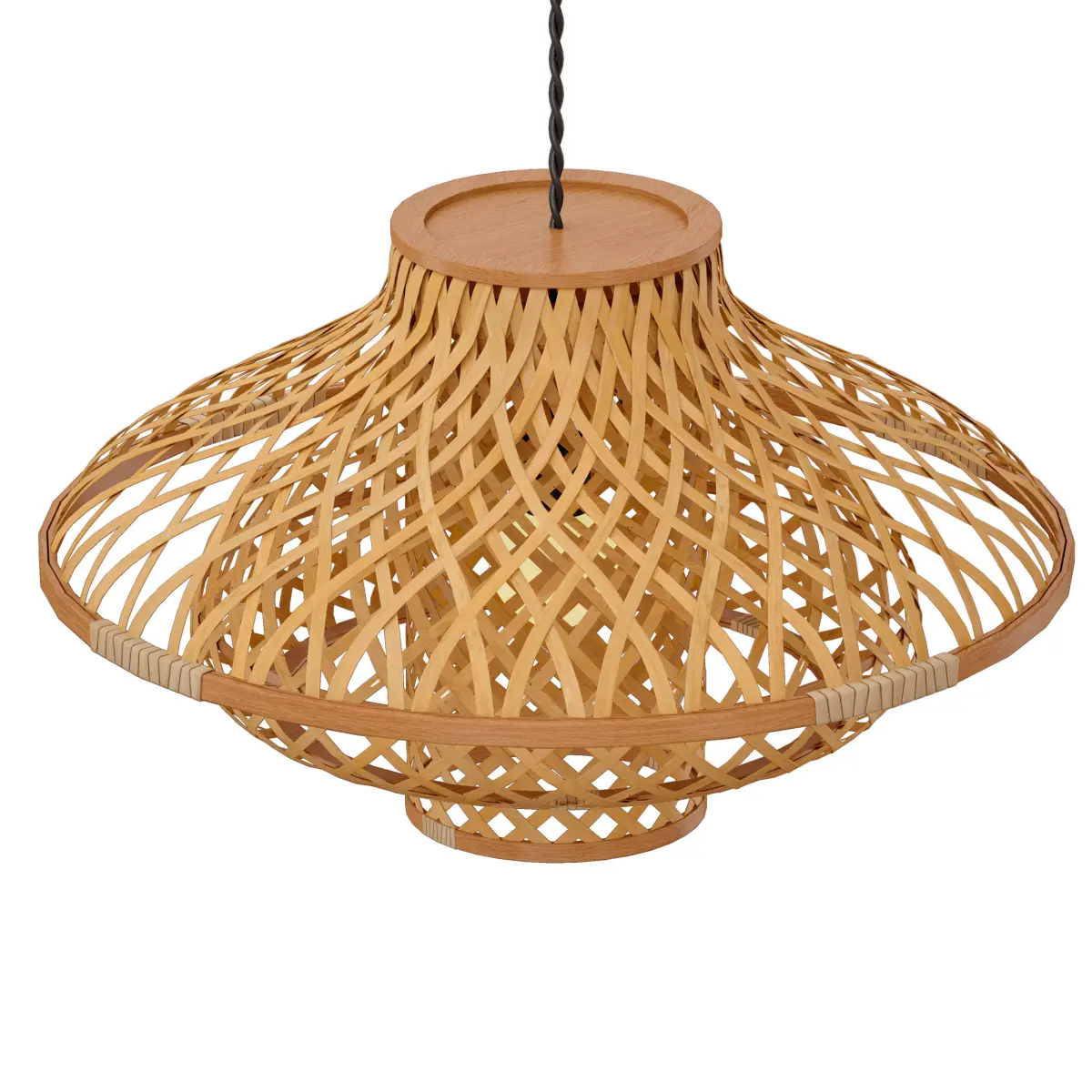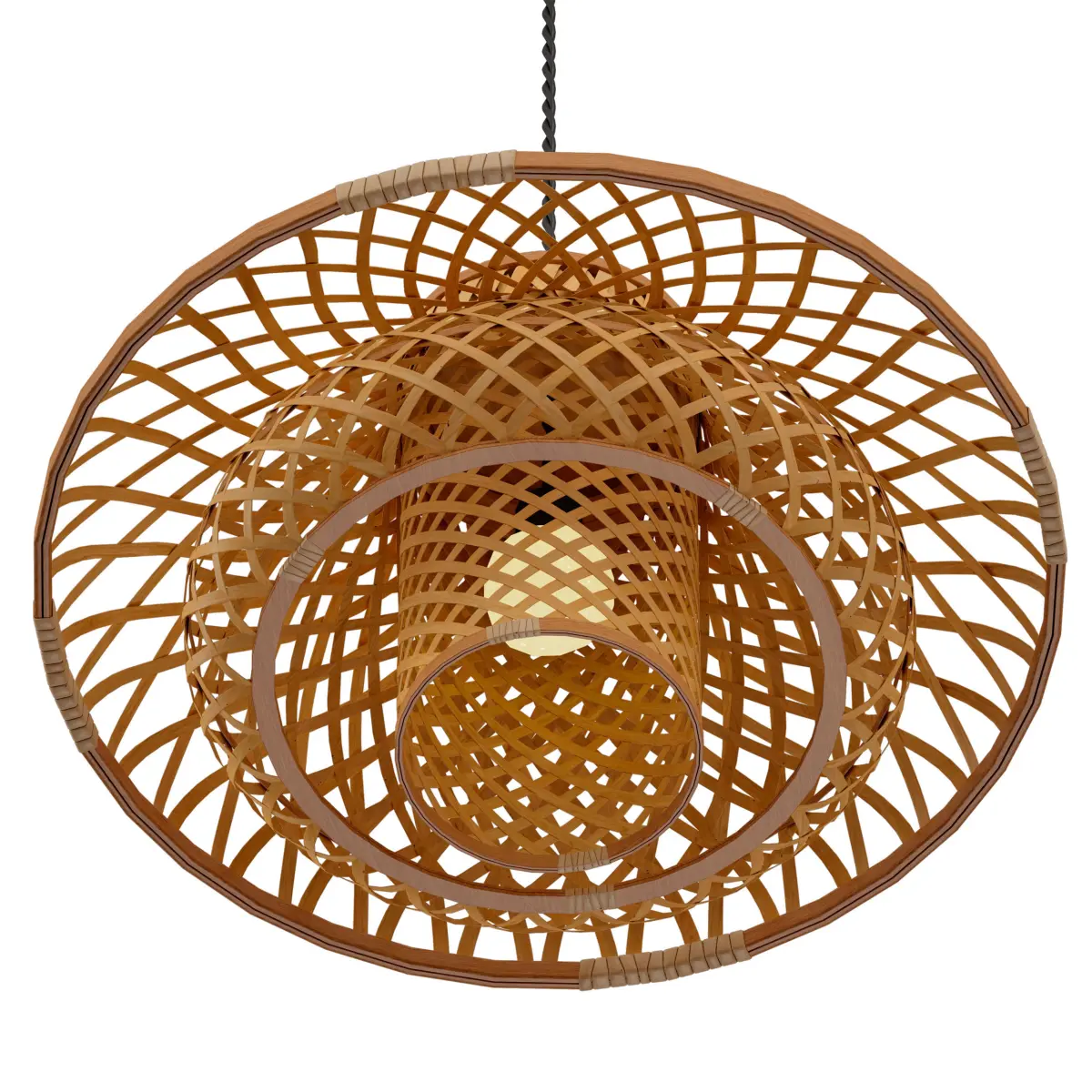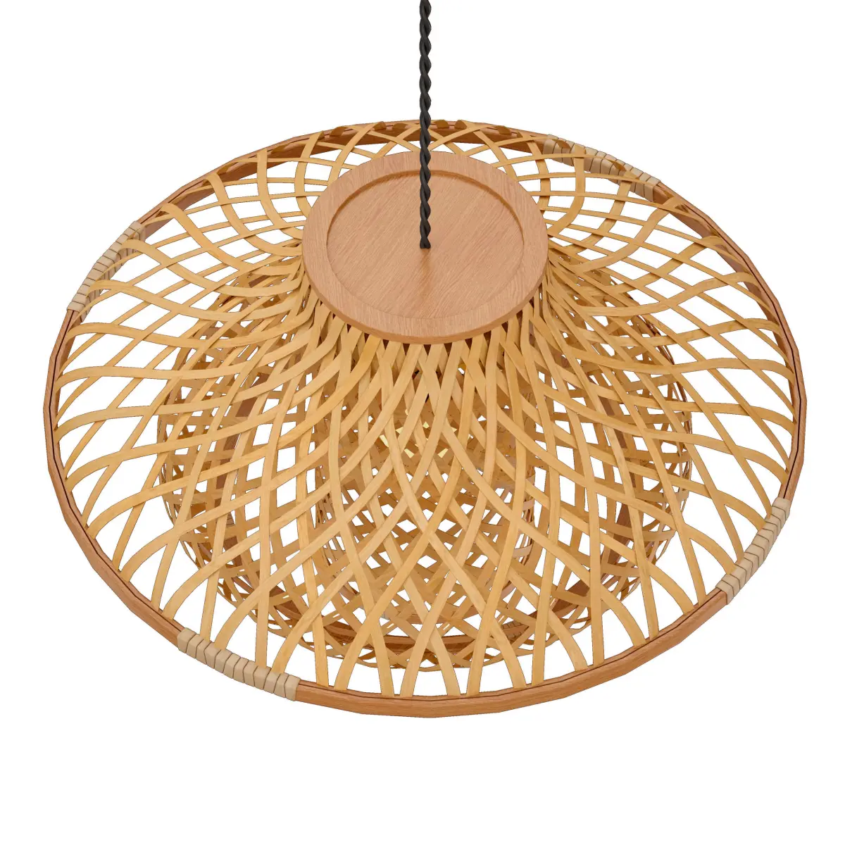 Hanging lamp, chandelier, rattan wicker lampshade.Overall dimensions: diameter 60cm.