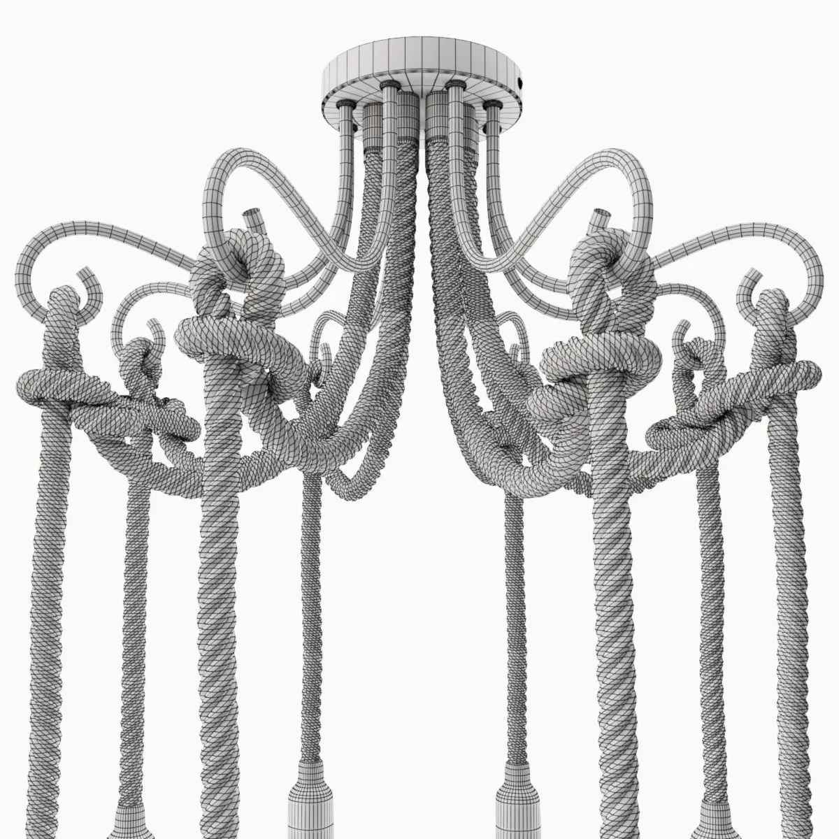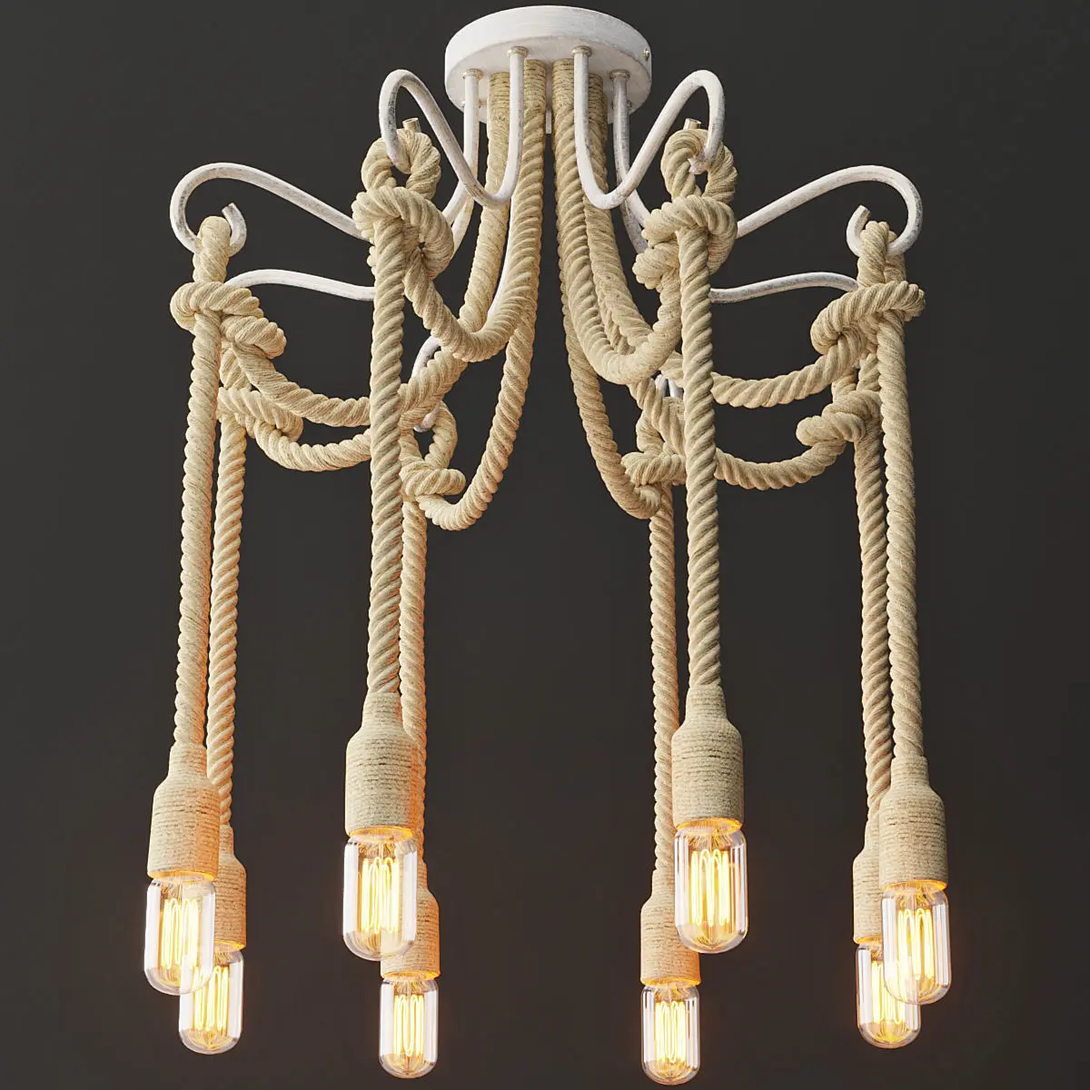 CHARACTERISTICSArticle 40.2975-3Manufacturer Loft-ConceptType ChandelierColor White White Vintage PatinaMaterial Metal, Hemp RopeHeight 40 cmDiameter 70 cmType of lamp 8 x E27 x 40WIP20 protectionStyle Modern / Loft /Place of useliving room / dining room / bedroom / hall / lounge area / bar, cafe, restaurant / hotel and hotel /
