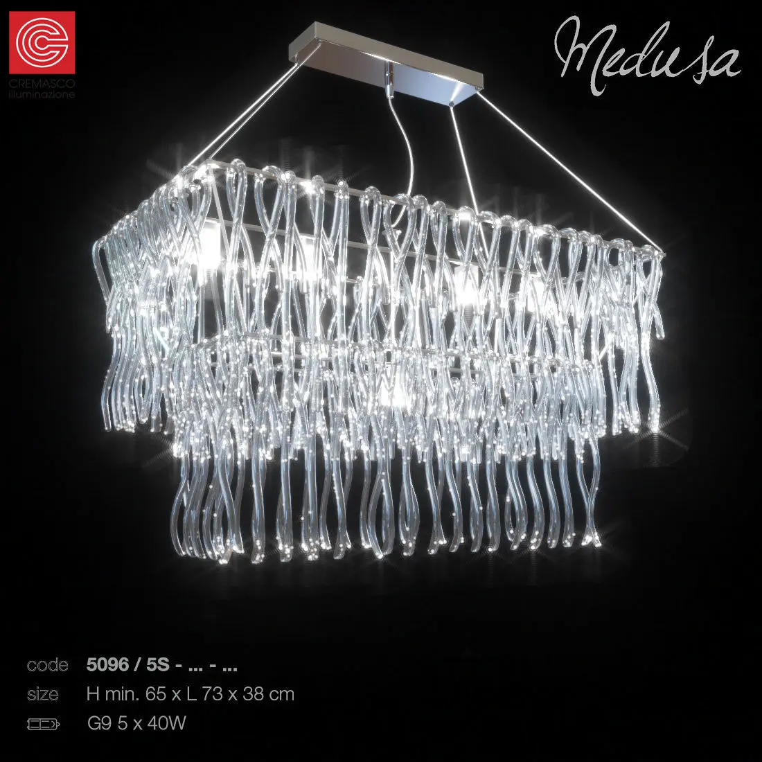 Chandelier height of 650 mm, length 730 mm, width 380 mm.