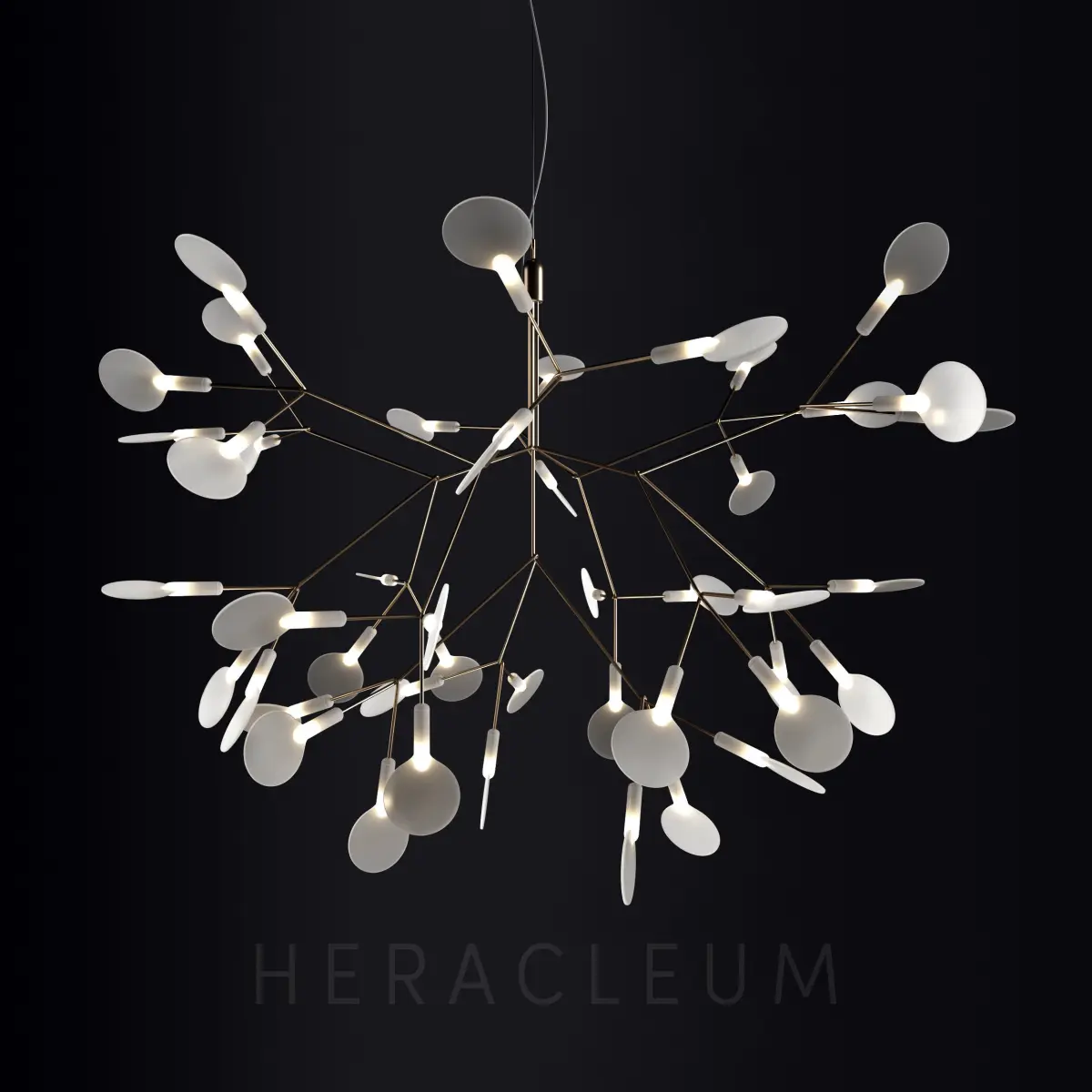 About chandelier:The decorative Led lamps inspired by Heracleum Plant now comes in two size. Theleaves ramify from a branch creating a very technical, natural structure. By using technique of coating conductive layers. A design not possible with normal wires.