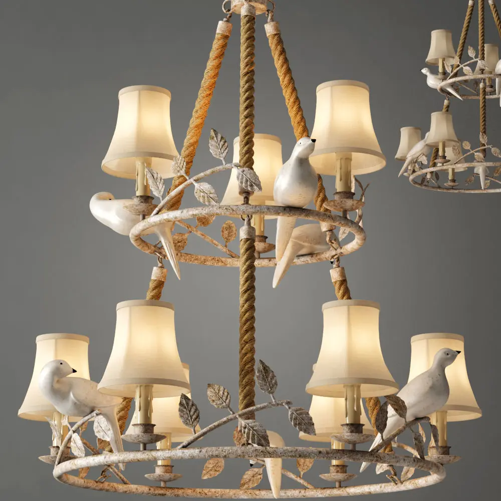 descriptionCHARACTERISTICSType -LustraArticle 40.885.CH.20.TFBColor of the case ivory (ivory)Material-Metal, Cloth, Hemp ropeThe height of the most chandelier is 105 cmDiameter 90 cmLamp type E14 x 9 x 60WLighting sourcenot includedStyle Provence /Place of useliving / dining / show room, studio / hotel and hotel /