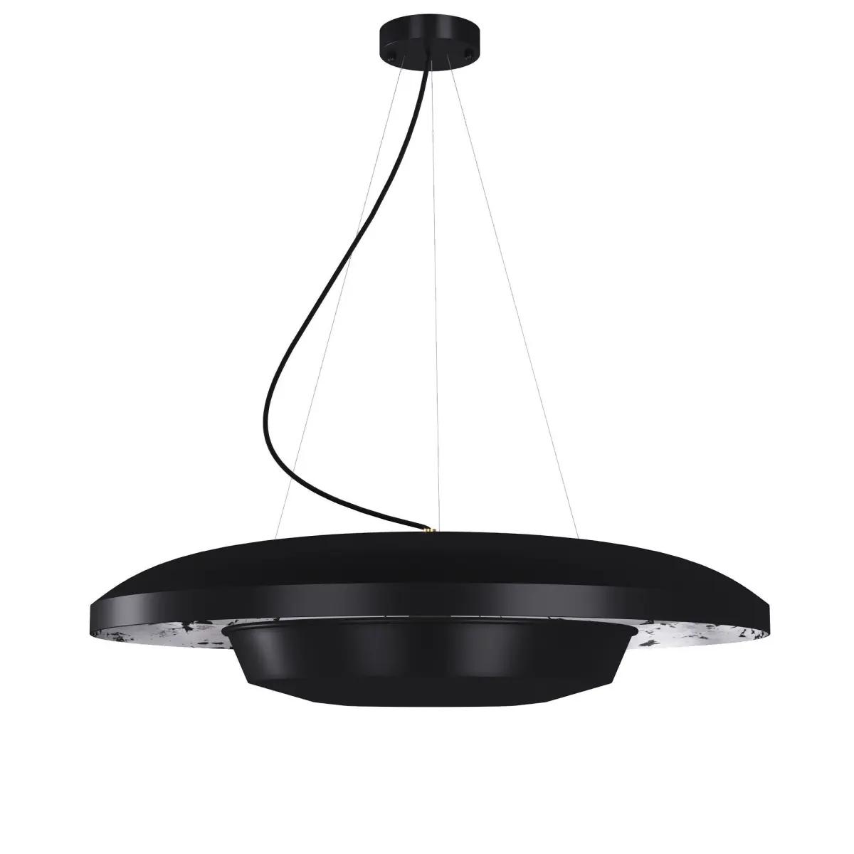 Chandelier ''Solar/Moon eclipse'' SKU.5052 by Pikartlights For an even more intimate atmosphere and feeling of the presence of the Solar Eclipse in the interior, we created a chandelier that almost levitates. A minimum of fasteners, a maximum of elegance and style. Decorated with gold plating by the hands of a craftswoman, the Solar Eclipse chandelier reflects light during the day even without electricity, thanks to the high density of the covering material. Such a property is mesmerizing! Don't wait for the next eclipse - give yourself your own Sun and enjoy aesthetic pleasure beyond time! Made of aluminum and steel. For more information please check the product page: