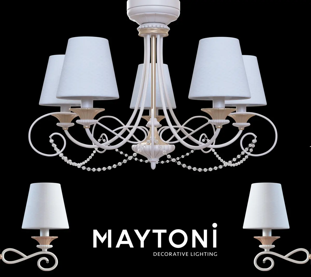 Chandelier Sonate ARM424-PL-05-W Maytoni ClassicSeries: SonateMetal frame. Glass bead pendants. PVC lampshade covered with white textured cloth.