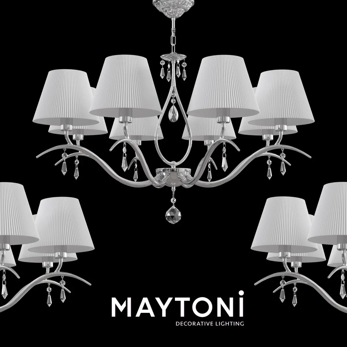 Chandelier Talia MOD334-PL-08-N Maytoni ModernMetal frame. Lampshades of white corrugated material. Crystal pendants. Old article - ARM334-08-NVerchromter Metallrahmen. Fein gewellte Lampenschirme aus weißem Stoff. Erstklassige Kristallbehänge.Series: TaliaCollection: ModernStyle: Maytoni ModernType of lamp: ChandelierHeight, mm: 510Height with suspension mount, mm: 940Diameter, mm: 770Height of the ceiling cup, mm: 70Diameter of the ceiling cup, mm: 110Number of bulbs: 8Cap: E14Power: 40WFrame material: Metal Colour: NickelMaterial of shade: Cotton on PVC