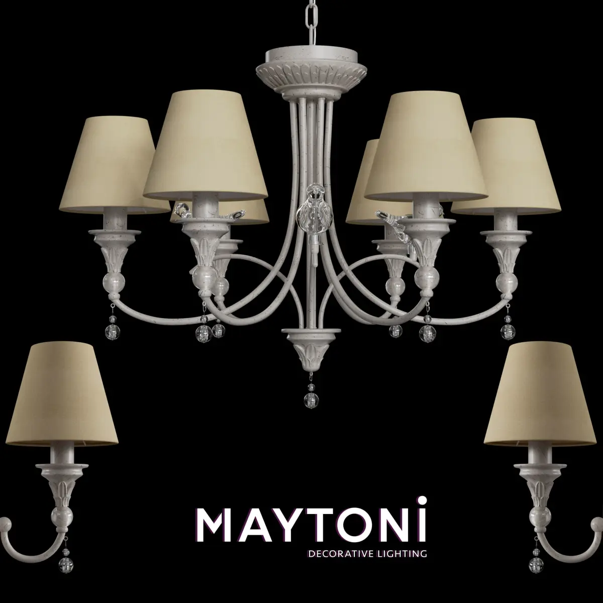 Chandelier Torino ARM139-06-W Maytoni ClassicSeries: TorinoMetal frame. Decorative elements in the form of clear glass birds. PVC lampshade covered with beige cloth.