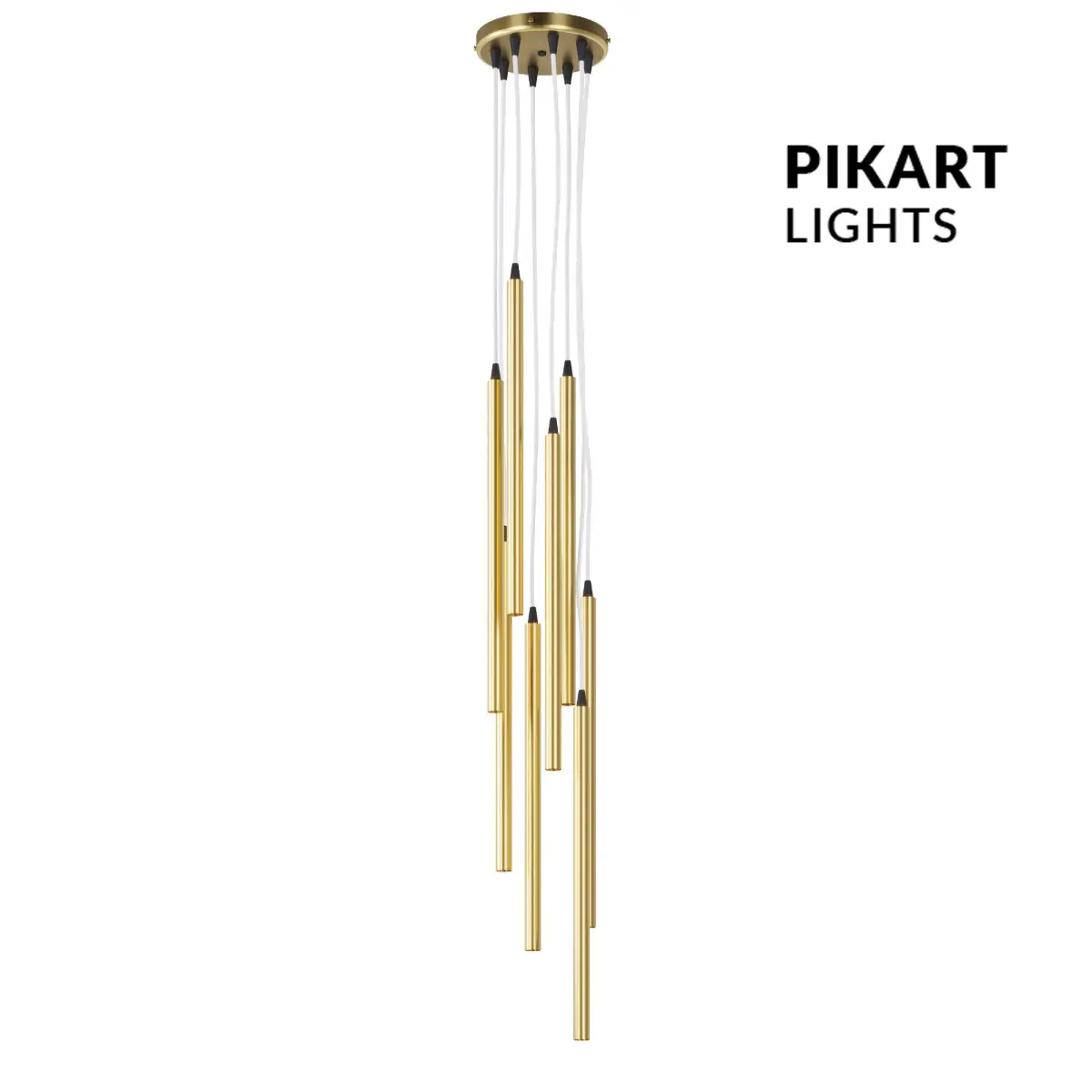Chandelier ''Tubes'' SKU.4870 by PikartlightsThis chandelier can perfectly complement the interior of a room in a modern style. It is available in three sizes: 8 tubes, 16 tubes, and 27 tubes, as well as in two colors of wires: black or white. Made of brass. For more information please check the product page: