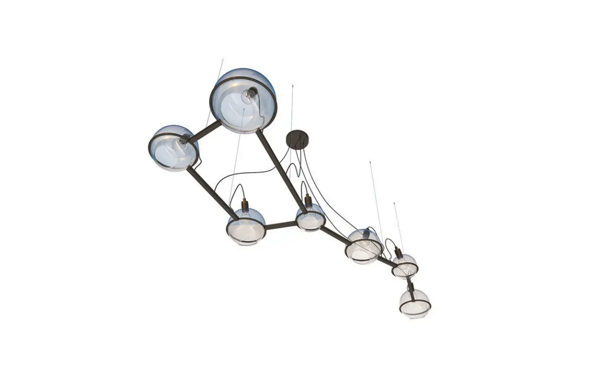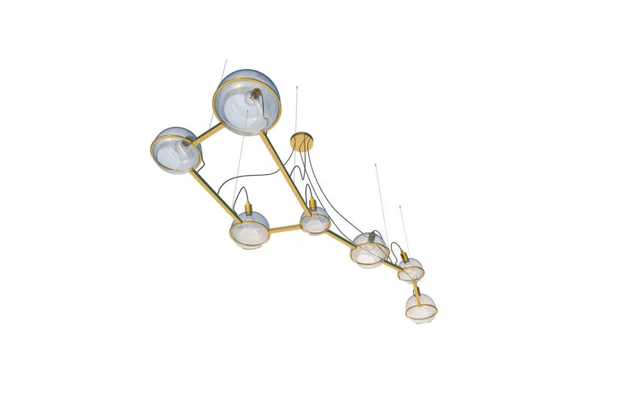 Chandelier Ursa Major art. 20915 by Pikartlights.The Spacelights series is a constellation for everyone. A HOROSCOPE IN METAL AND GLASS that illuminates any interior. Metal: brass, copper, chrome, painted metal. The Spacelights project is a constant in a changing space that makes you stop and find order in the stream of thoughts, closing the door to the daily hustle and bustle. The star is getting closer. Uniqueness in detail. The constellation of the Great Bear in your personal space.Made of brass, glass, and steel, available in 4 colors. For more information please check the product page: