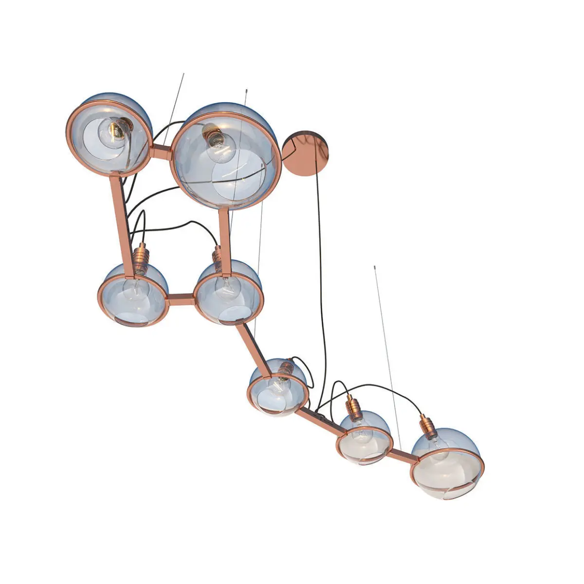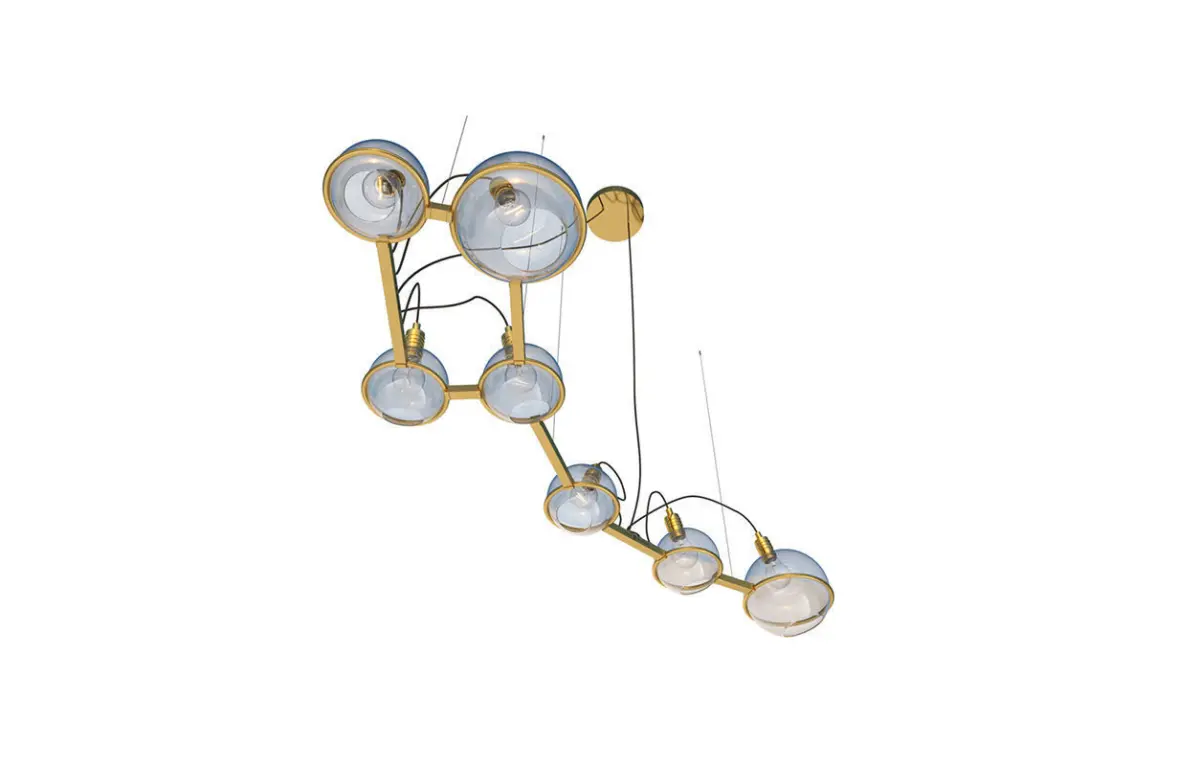 Chandelier Ursa Minor SKU.20916 by Pikartlights.The Spacelights series is a constellation for everyone. A HOROSCOPE IN METAL AND GLASS that illuminates any interior. Metal: brass, copper, chrome, painted metal. The Spacelights project is a constant in a changing space that makes you stop and find order in the stream of thoughts, closing the door to the daily hustle and bustle. The star is getting closer. Uniqueness in detail. The constellation of Ursa Minor in your personal space. Ursa Minor (Latin: Ursa Minor) is a constellation in the northern celestial hemisphere. It is an ancient constellation included in the star catalog Almagest compiled by Claudius Ptolemy. Since ancient times, the constellation has been used by Phoenician seafarers for navigation and orientation. The brightest star in the constellation is Polaris.Made of brass, glass, and steel, available in 4 colors. For more information please check the product page: