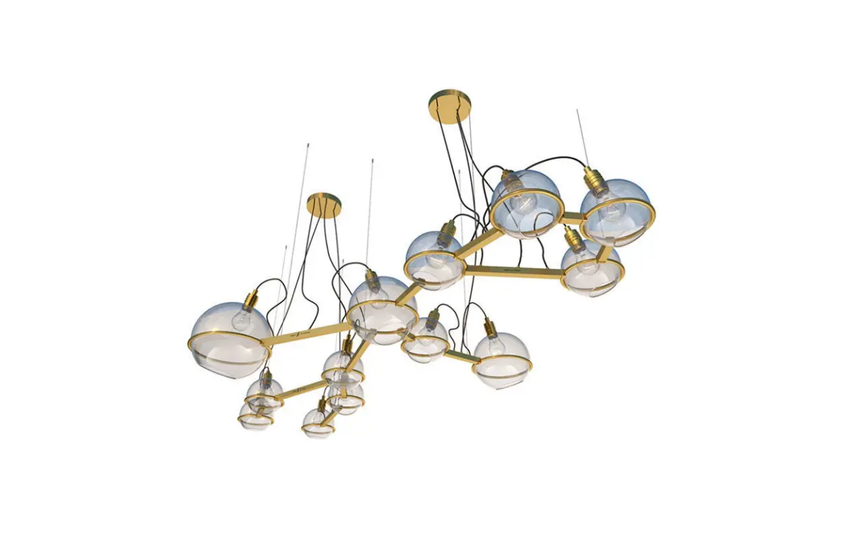 Chandelier Virgo SKU.20898 bu Pikartlights.The Spacelights series is a constellation for everyone. A HOROSCOPE IN METAL AND GLASS that illuminates any interior. Metal: brass, copper, chrome, painted metal. The Spacelights project is a constant in a changing space that makes you stop and find order in the stream of thoughts, closing the door to the daily hustle and bustle. The star is getting closer. Uniqueness in detail. The constellation of Virgo in your personal space. Virgo (Latin: Virgo) is a zodiac constellation located between Leo and Libra. In the modern era, the autumn equinox point is located in the constellation of Virgo. It is one of the largest constellations in the sky and is easily found in the starry sky thanks to its brightest star, Spica.Made of brass, glass, and steel, available in 4 colors. For more information please check the product page: