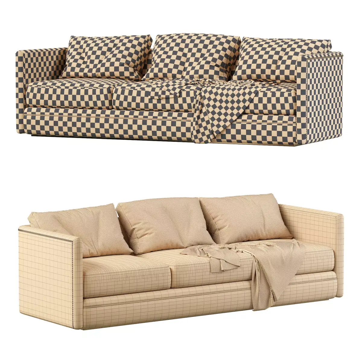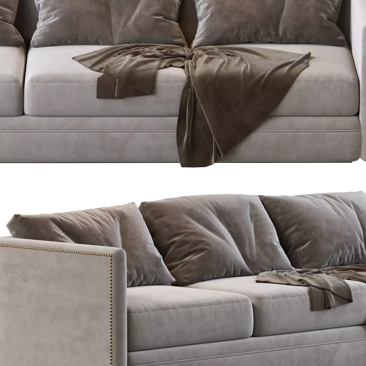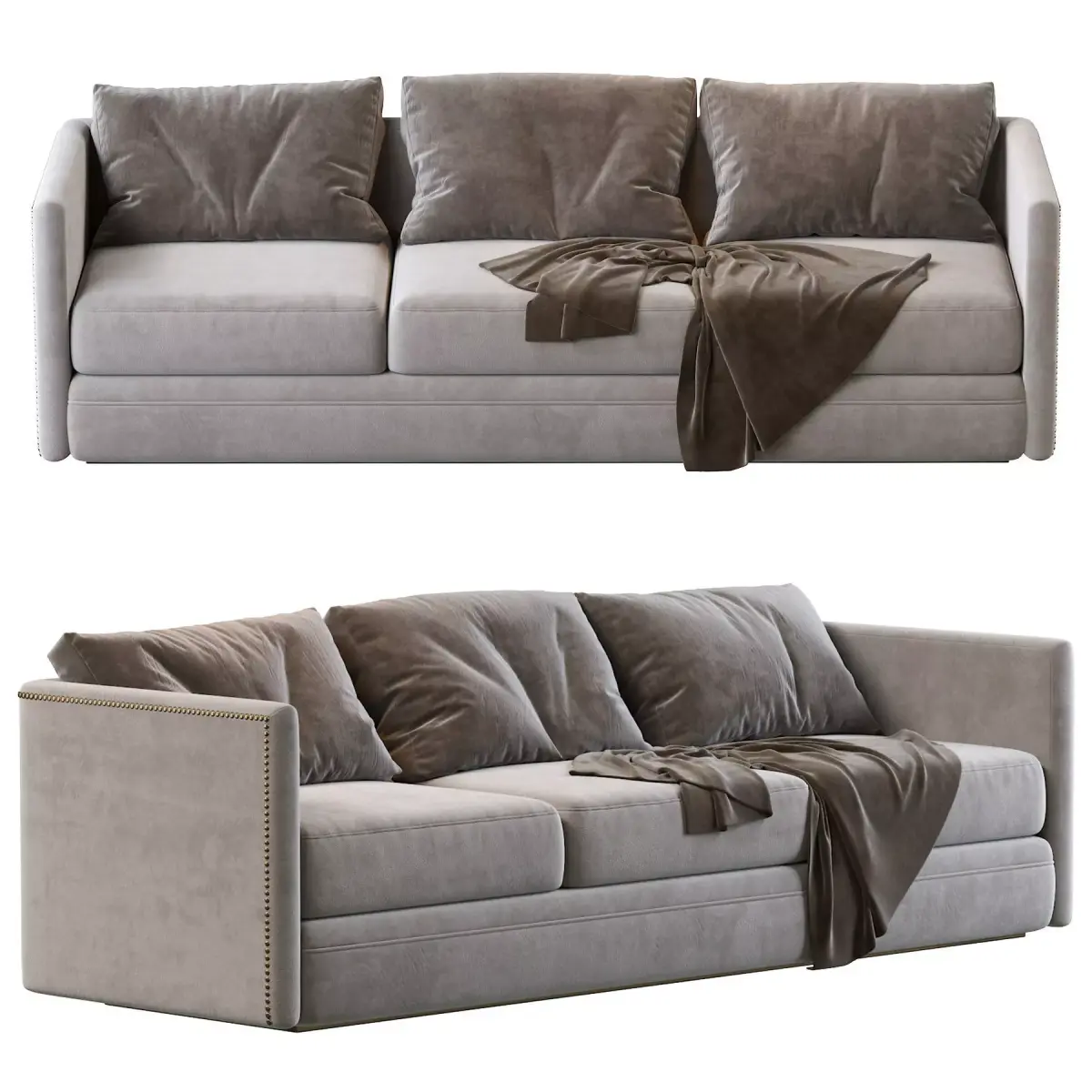 Chanel is a three-seat upholstered sofa hemmed with a line of studs on its edges that provide a modern and exquisite touch. A minimalist design that can fit any interior design look.