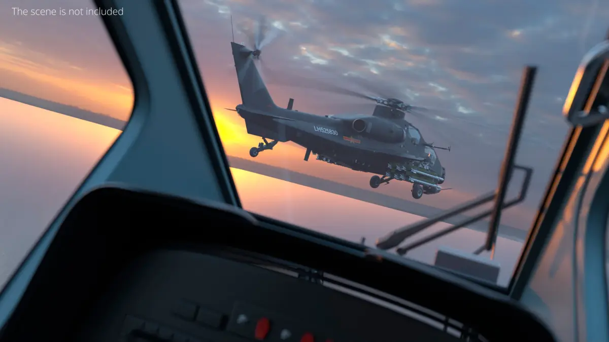 Changhe Attack Helicopter Z-10 with Rocket Loadout Black Rigged is a high quality, photo real 3d model that will enhance detail and realism to any of your rendering projects. The model has a fully textured, detailed design that allows for close-up renders, and was originally modeled in 3ds Max 2020 and rendered with V-Ray. Renders have no postprocessing!