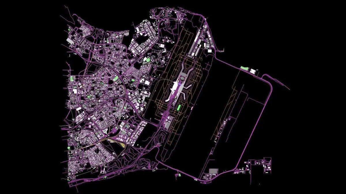 - Buildings has 3 building groups setup so that you can add variety to buildings (color materials and/or textures) Groups can be turned off/on - Road Network has 2 objects included | 1. roads 2. other areas - Public Transport (2 objects) includes the transport lines and stations/stops - Aeroway includes the road network for airplanes (runways, airstrips, parking etc.)- UV mapped with overlapping UVs - no textures included / colors setup by materials (can be changed in any 3D software) - the model is positioned on a flat surface (road network is on the “floor” - no elevation data included) - geometry is polygonal quads and tris - model is untextured and renders fast