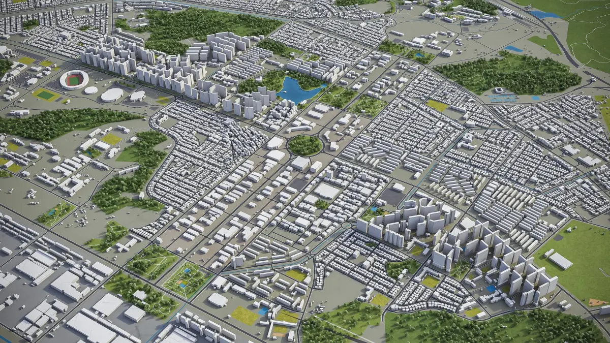 - Full city extents up to 100 x 100 km — or crop to an area of interest for better format compability and scene performance