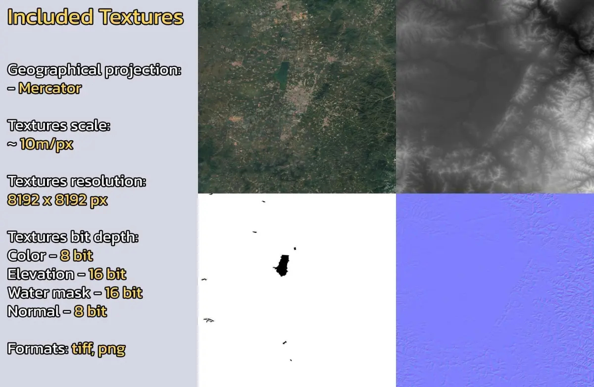 - Textures resolution: ~10m/px