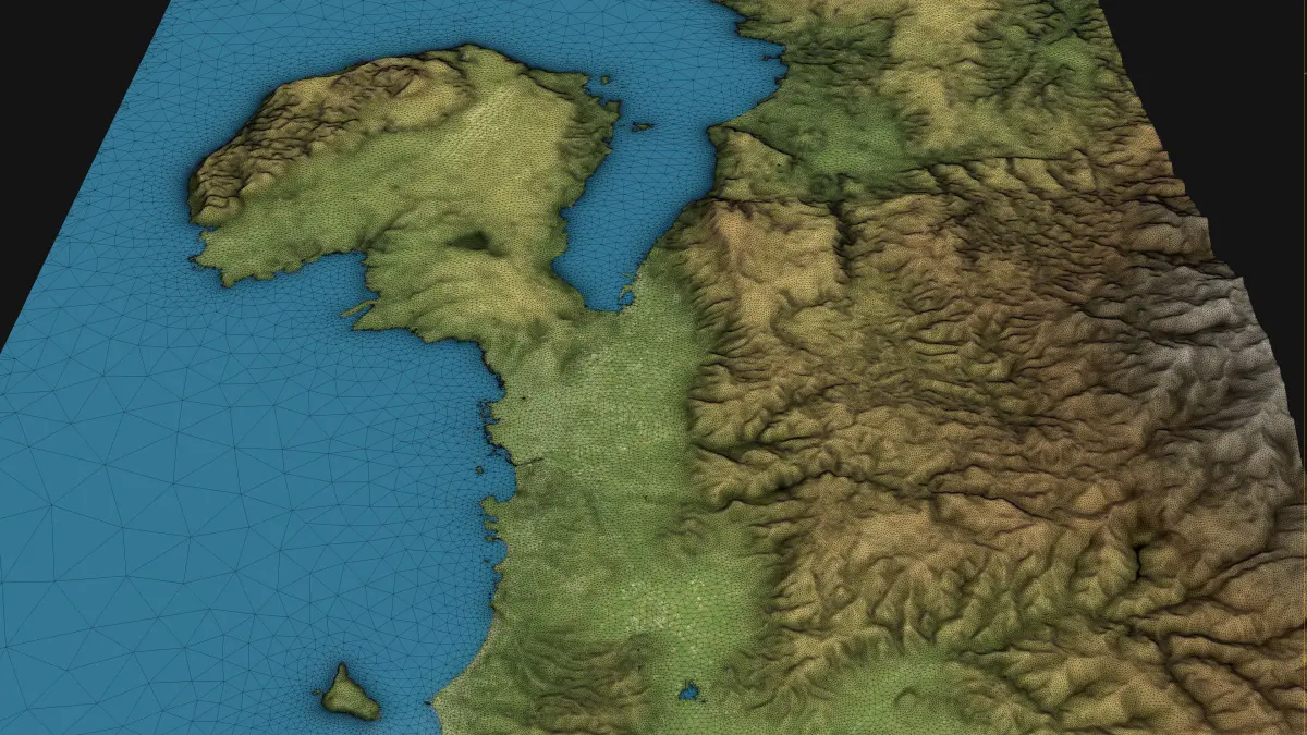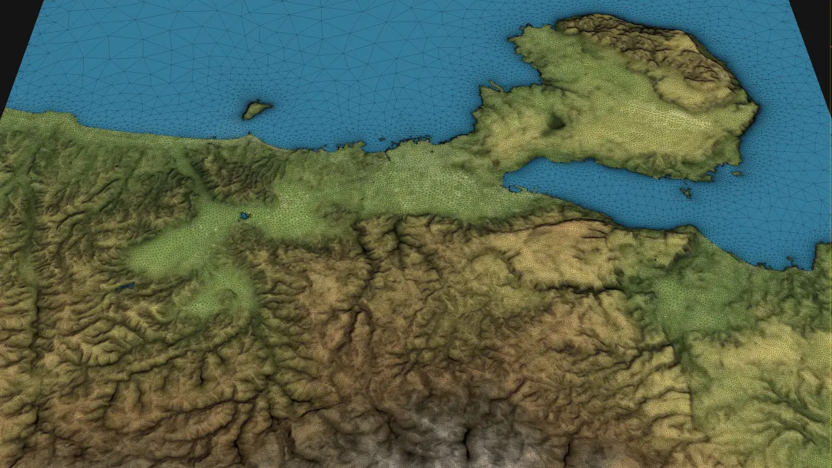 - 30-Meter Digital Terrain Model (DTM) — Quad-mesh raw terrain data acquired for detailed analysis and further optimization