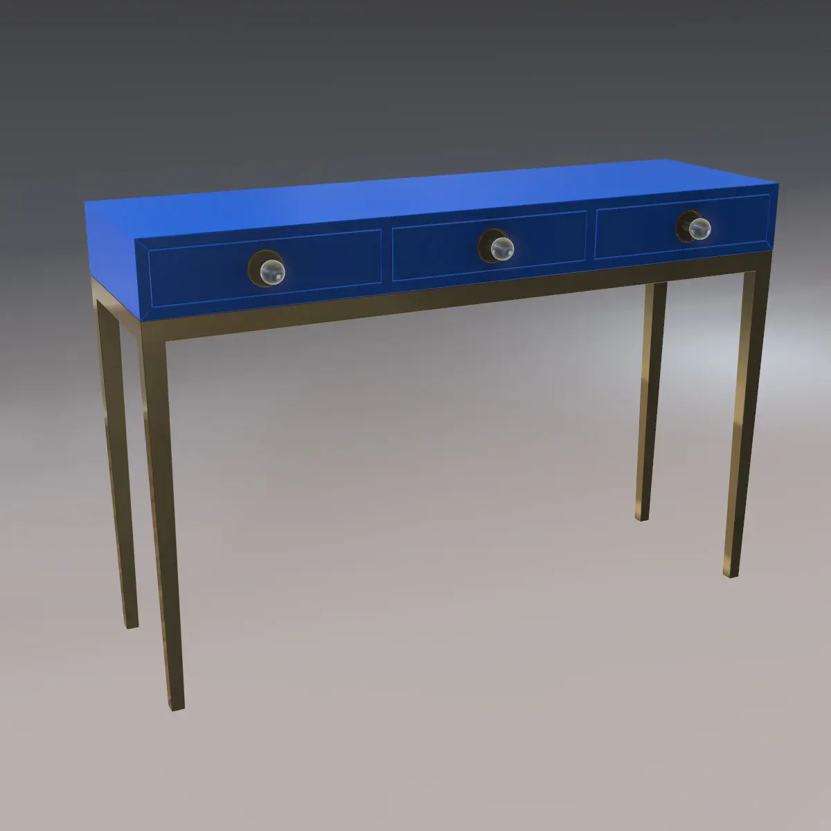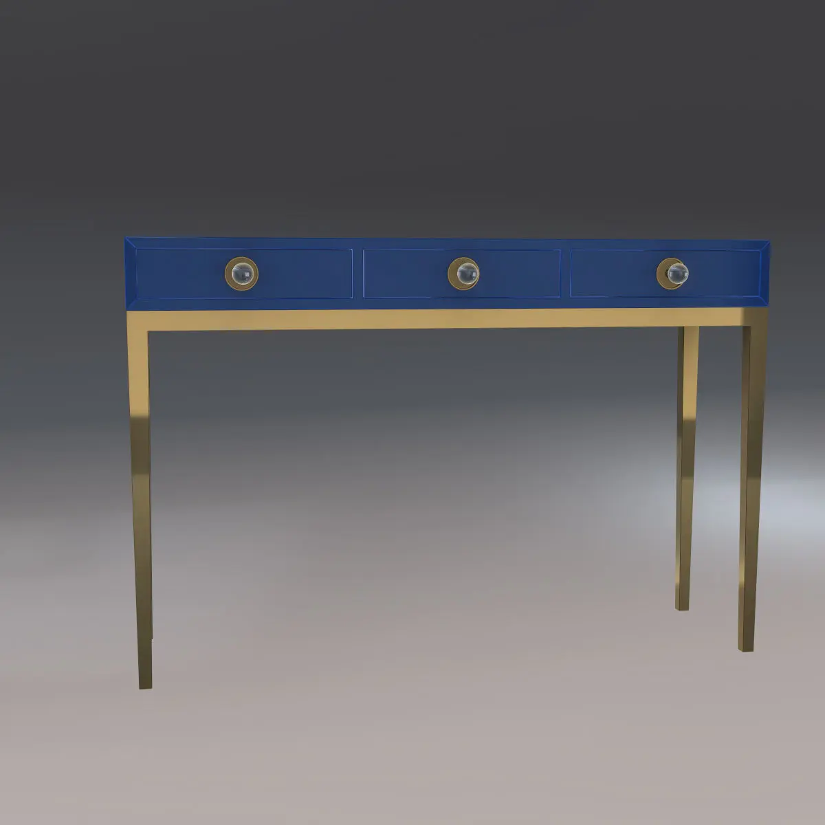 Neo-Classical lines, a dash of Hollywood glamour and a top note of Mod moxie. This three-drawer console is finished in glossy lacquer and features polished accents with oversized acrylic knobs. Long tapered legs look chic behind a sofa, or stately underneath that Rothko in the foyer.