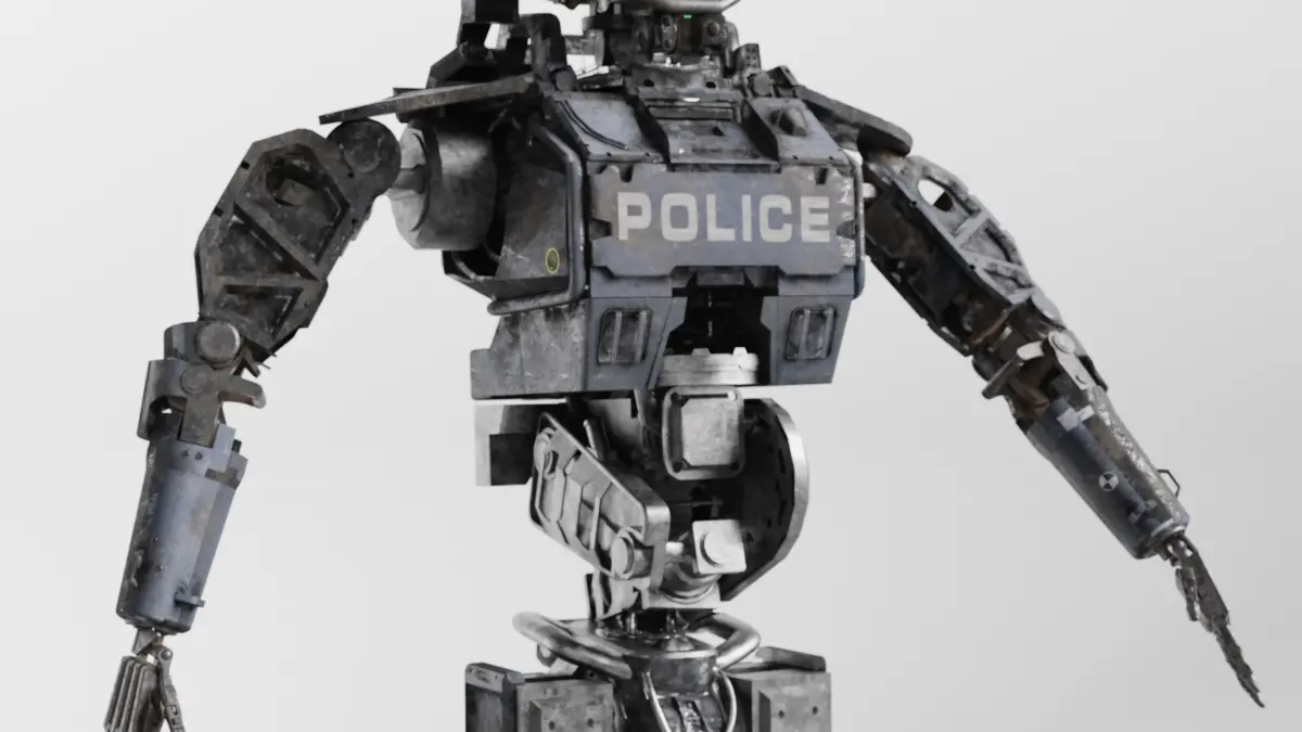 Tags:Chappie-Inspired Robot, Police Robot, Sci-Fi Character, Rigged 3D Model, IK Rig, Game Development, Animation Ready, Robotic Enforcer, Futuristic Design, 3D Robot, Character Asset, Urban Combat, Digital Art, Sci-Fi Simulation, Concept Art.