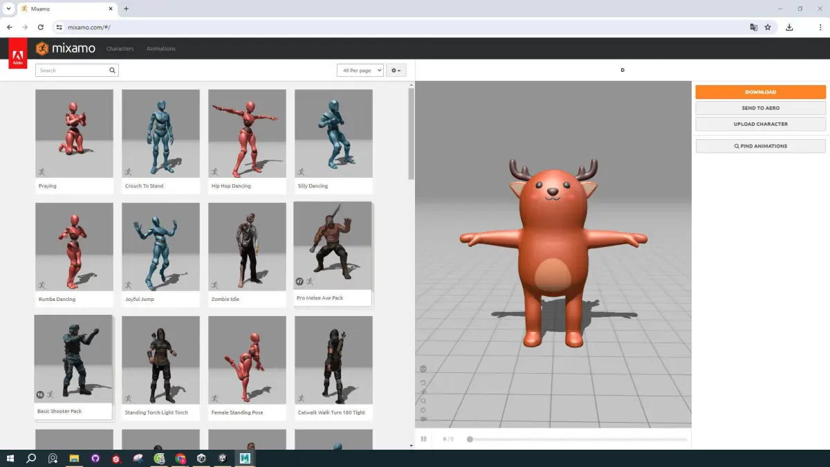The 3D model has been processed and you can upload fbx file (deer_rigged) to the website _mixamo.com to continue downloading the animation 3d you want.