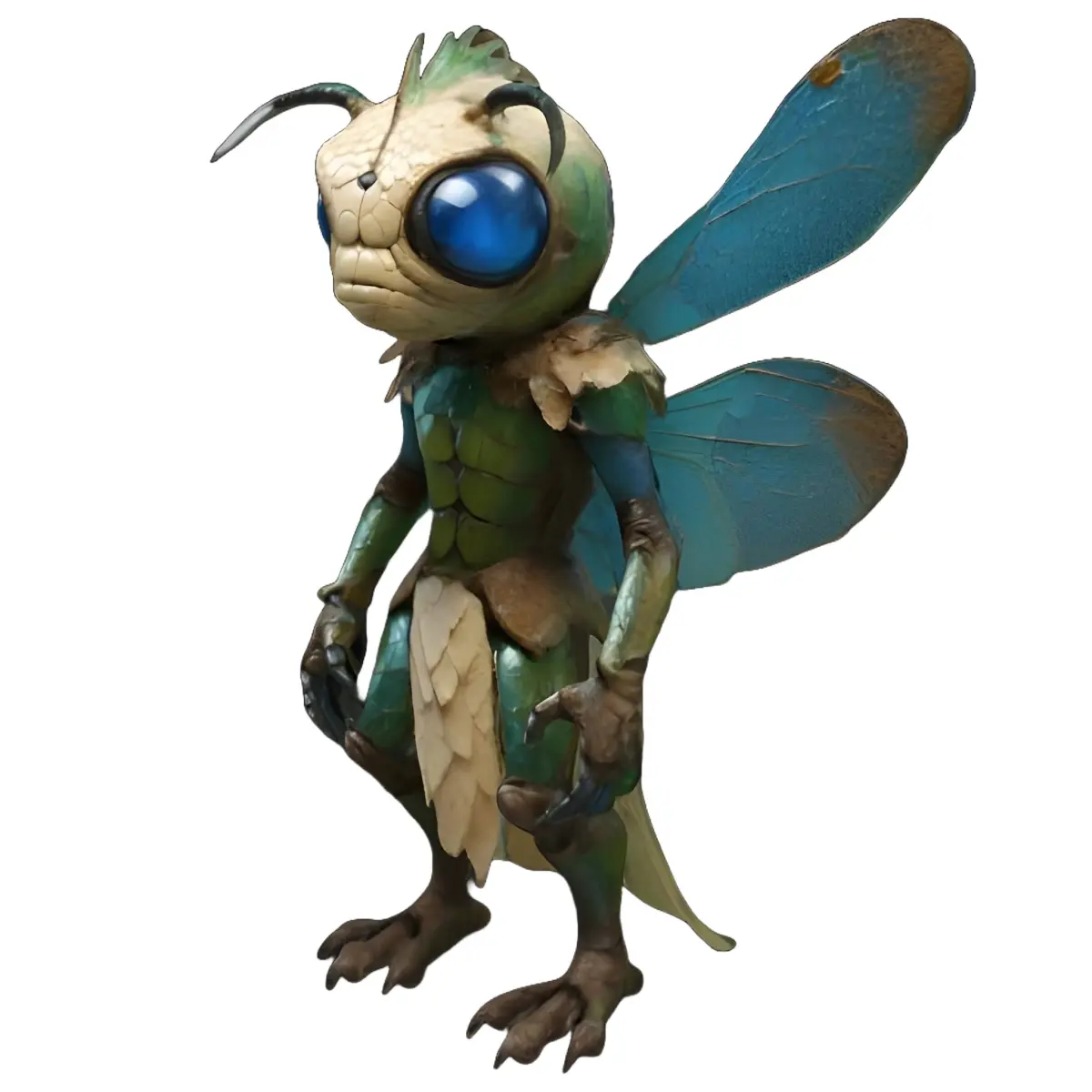 - A nature-inspired insect humanoid with delicate wings and intricate details, ideal for fantasy or naturalist themes.
