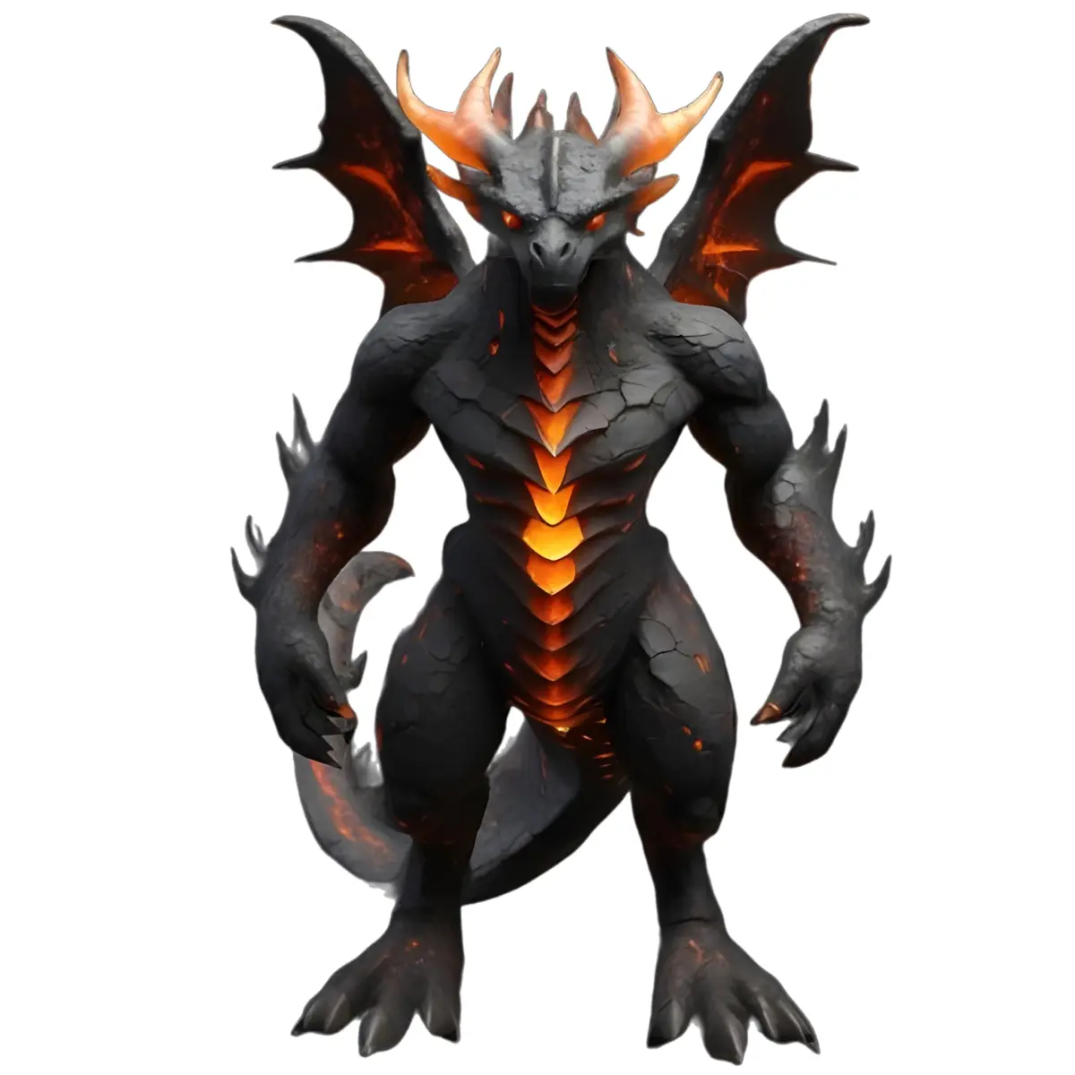 - A dragon-like creature with fiery details and menacing wings, perfect for tabletop gaming or as a stunning display piece.