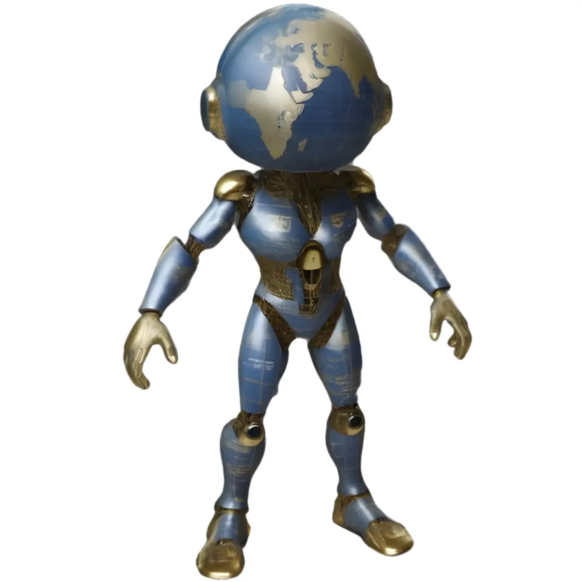 - A robot with a globe-shaped head and a futuristic design, symbolizing Earth and technology—a unique collectible or educational model.
